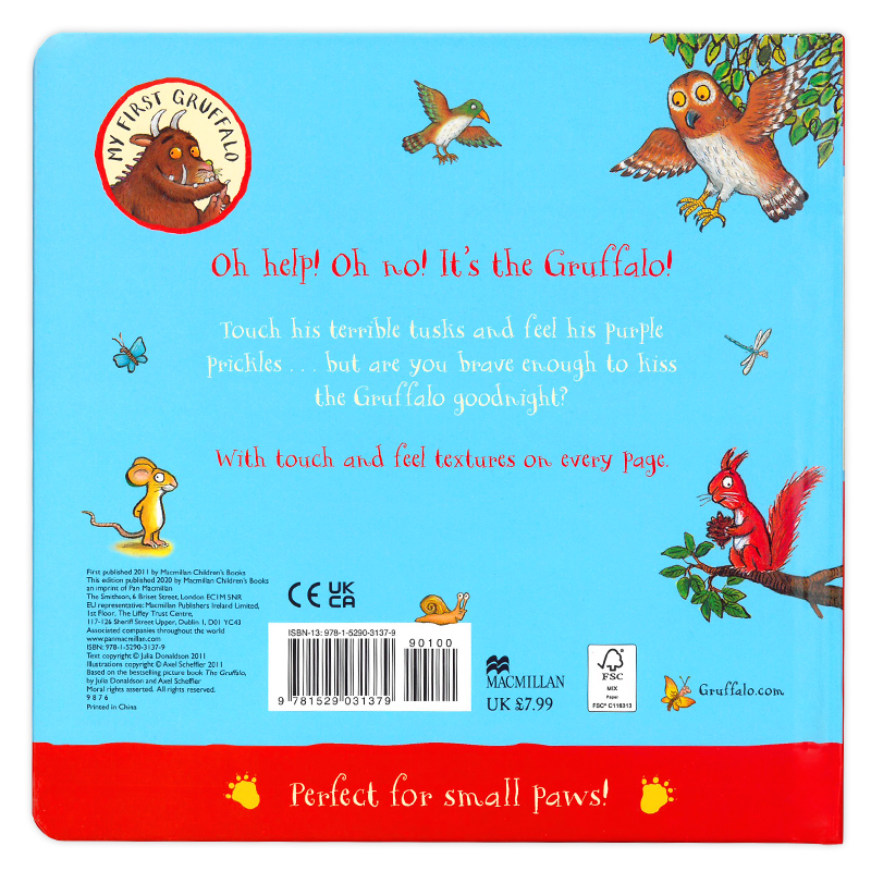 咕噜牛触摸书 英文原版 The Gruffalo Touch And Feel Book 茱莉娅唐纳森 桂冠作家 幼儿英语启蒙绘本 互动纸板书 搭咕噜牛小妞妞