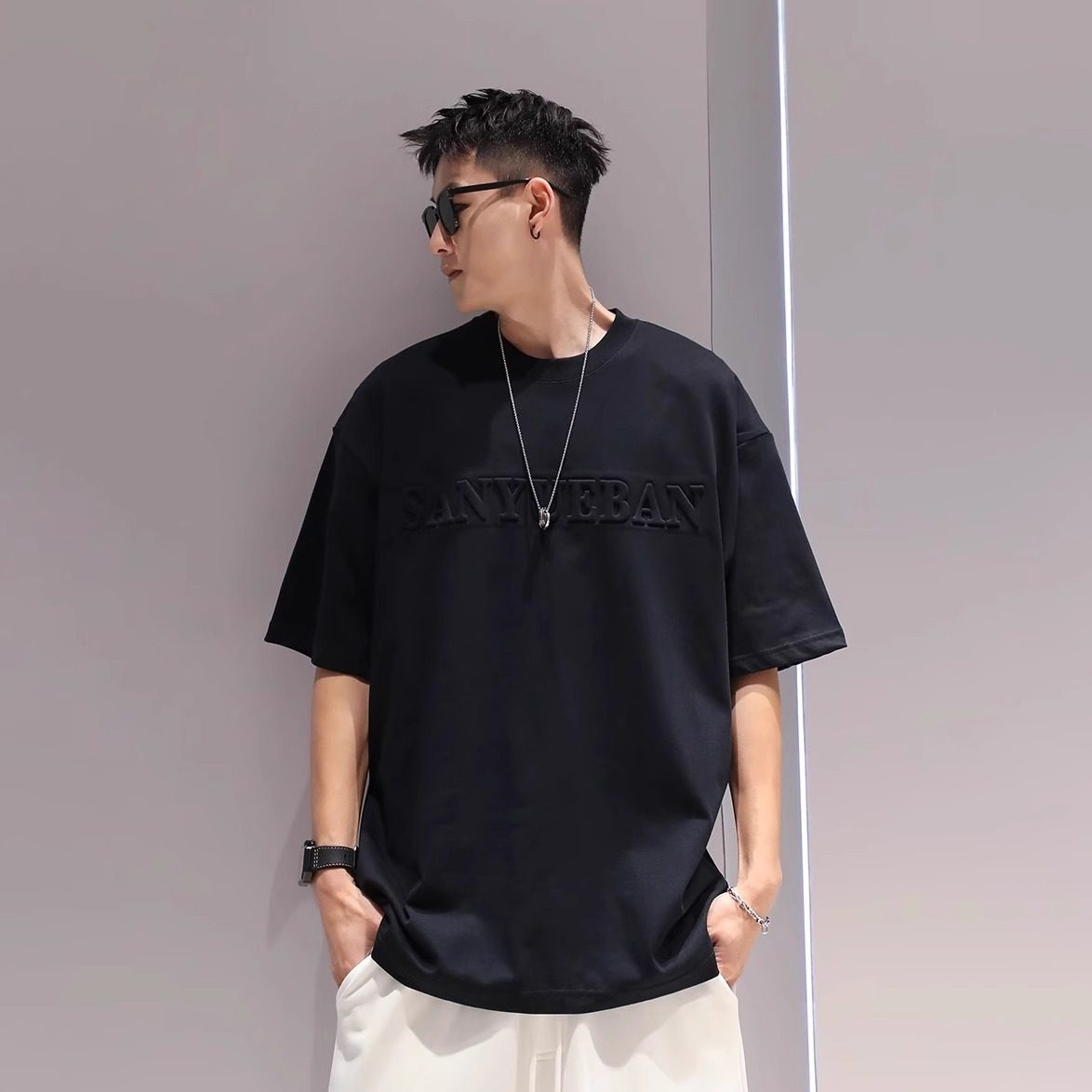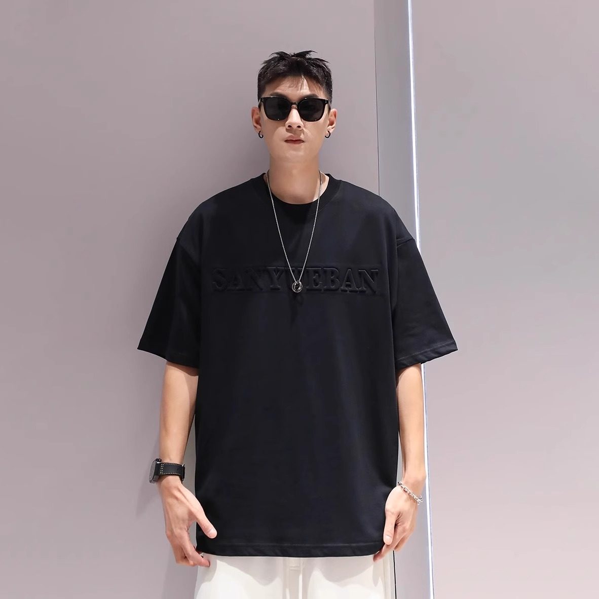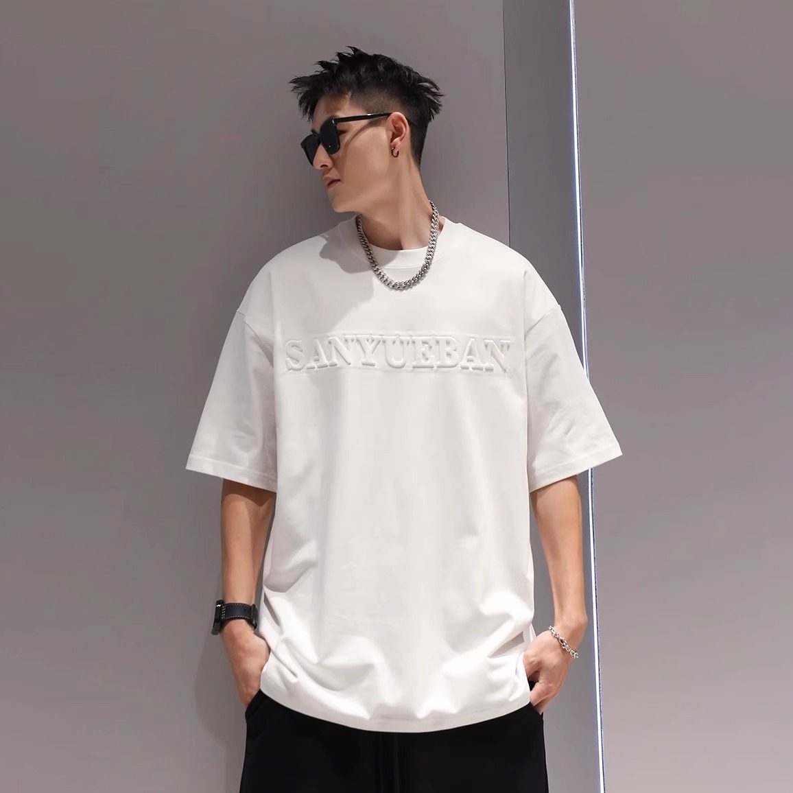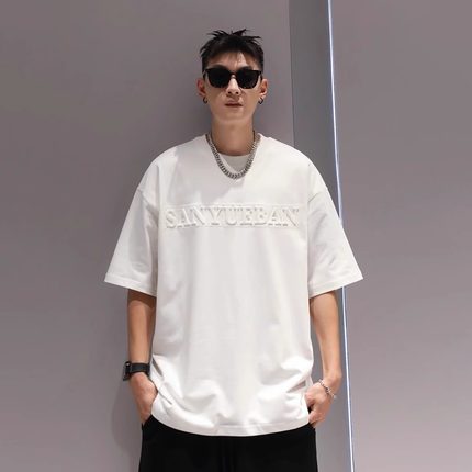 大码美式白色重磅短袖T恤男夏季纯棉休闲宽松潮牌潮流圆领设计感