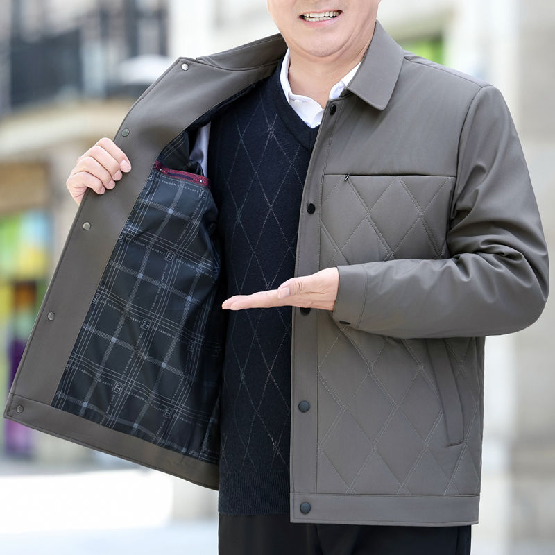 中老年男外套爸爸翻领夹克男秋装棉袄轻薄二棉行政夹克男外套中年
