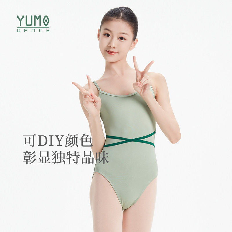 YUMO芭蕾舞服女吊带连体服高胯体操服形体舞蹈服练功服儿童艺考