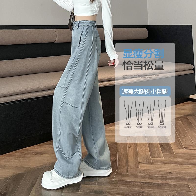 浅色阔腿牛仔裤女2025夏季新款小个子九分宽松香蕉弯刀直筒裤子薄