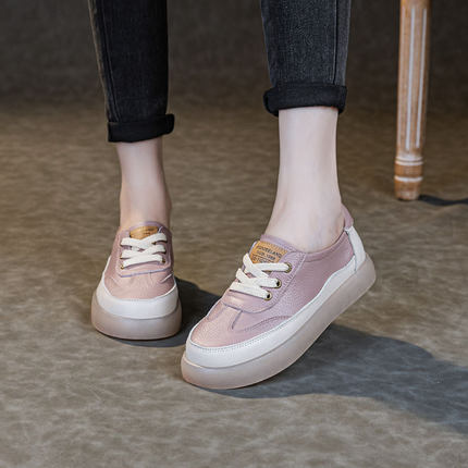 真皮小白鞋女夏薄款透气一脚蹬大码女鞋2026新款平底单鞋配裙子41