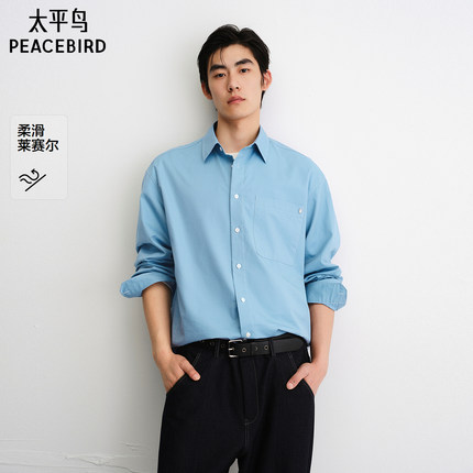 太平鸟男装 休闲衬衫春秋季莱赛尔休闲宽松男士长袖衬衫潮