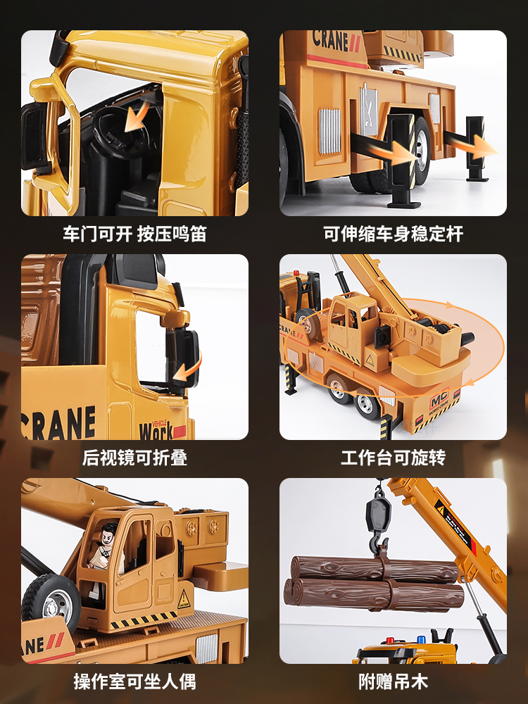 超大号合金工程车吊车玩具车仿真吊机挖掘机男孩儿童汽车挖机模型