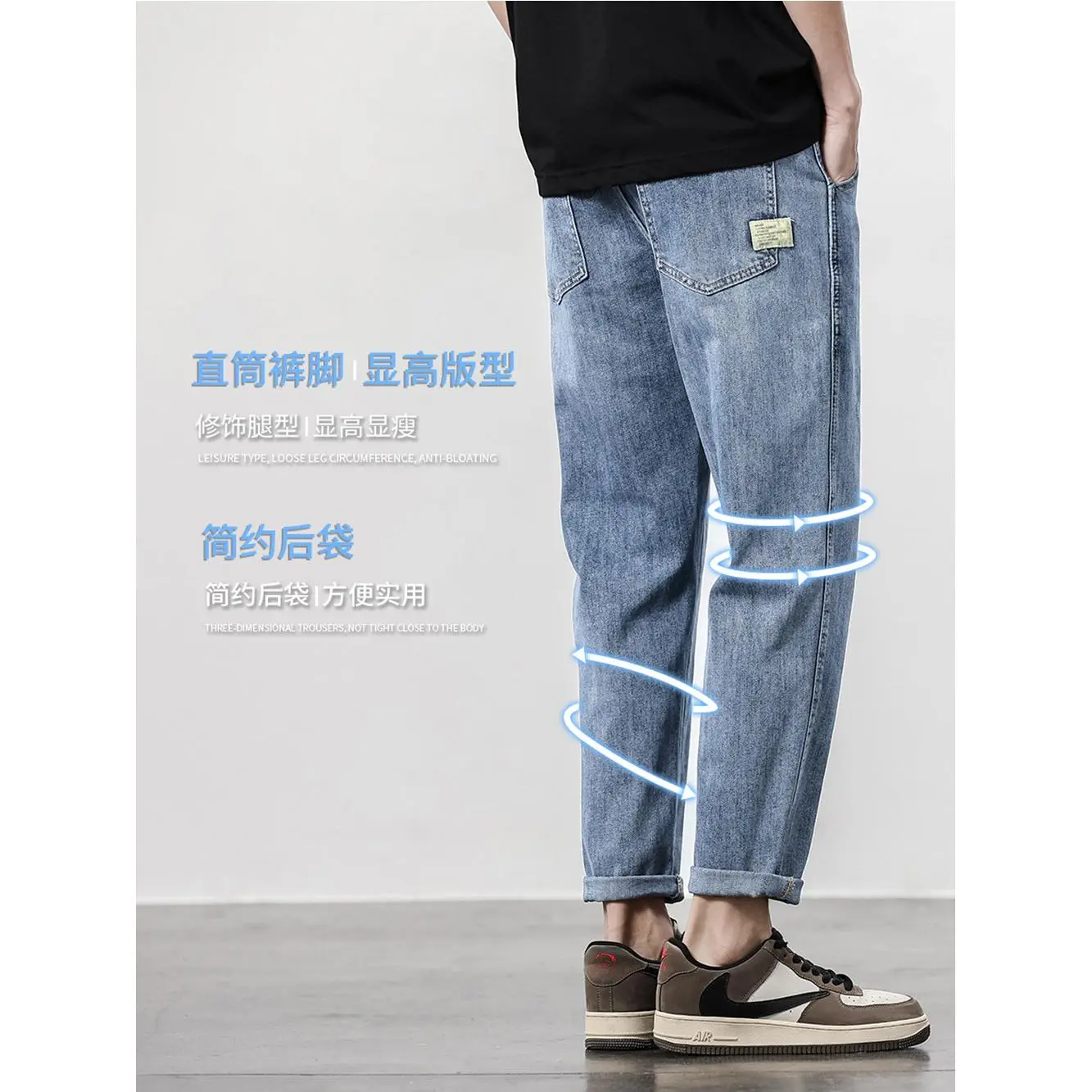 夏季薄款牛仔裤男生宽松直筒潮牌2022新款夏天休闲男士九分长裤子