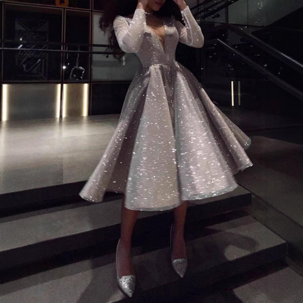2021春夏外贸女装长裙独立站欧美性感V领印金长袖连衣裙礼服婚纱