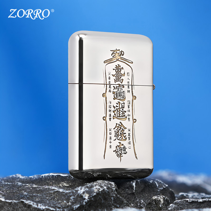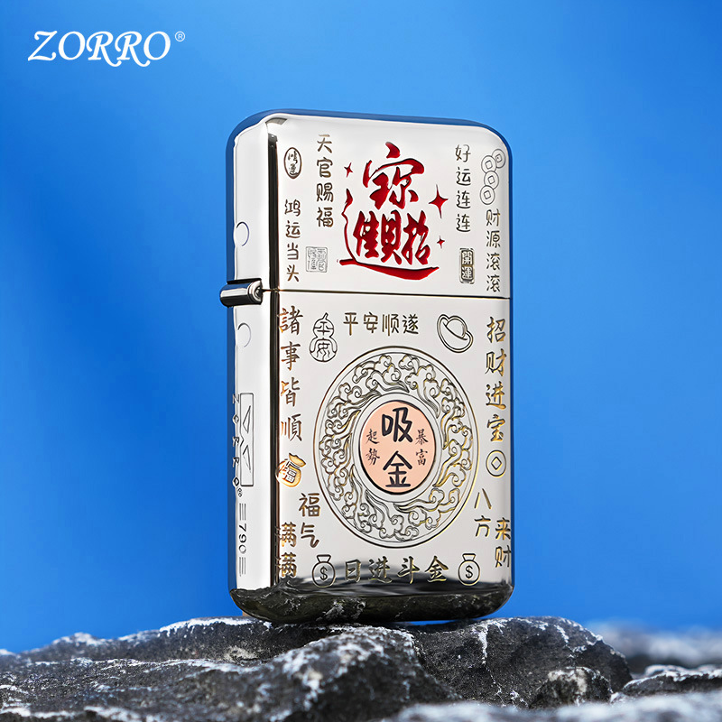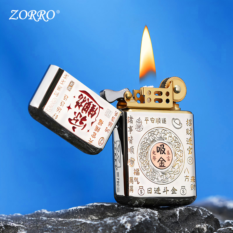 zorro佐罗正品煤油打火机砂轮防风纯铜紫铜镶嵌招财进宝吸金福财
