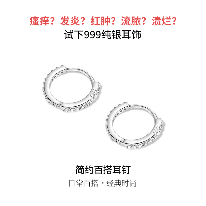 999纯银耳环女养耳洞睡觉免摘高级感钻石耳圈耳骨环耳扣耳钉耳饰