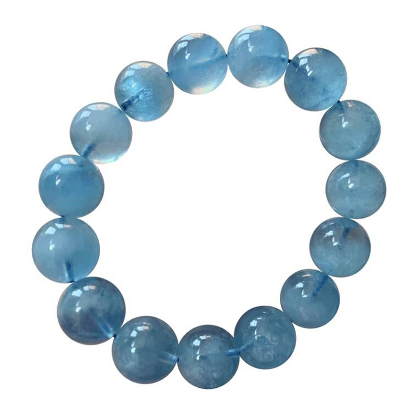 天然冰透海蓝宝单圈手链清透水晶润蓝色饰品绿柱石送礼物男女生款