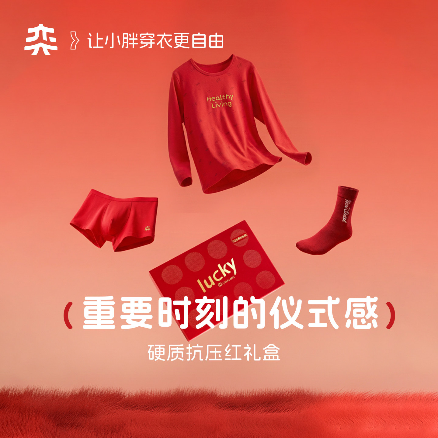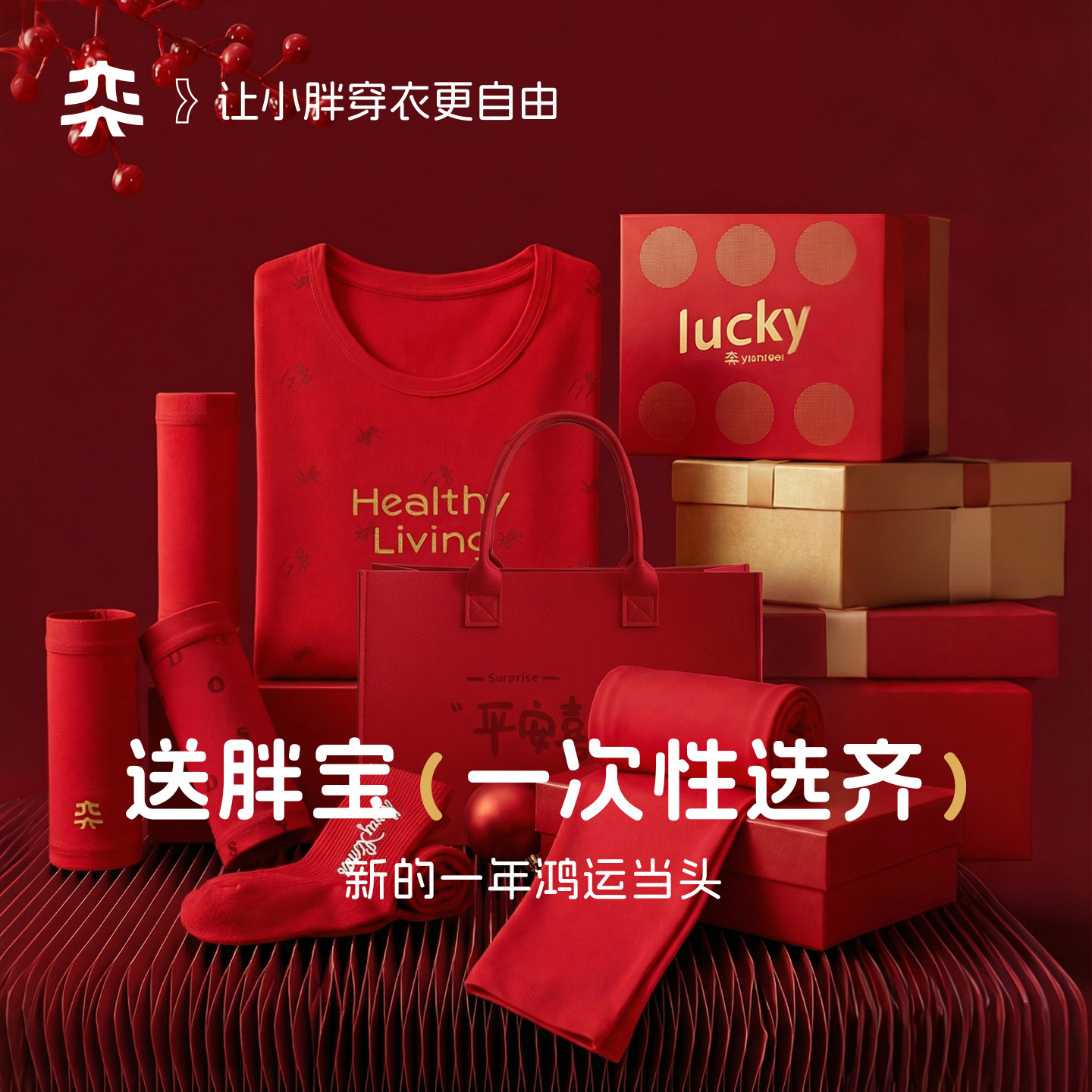 【奕马当先】奕时代胖男童本命新年红色礼盒保暖内衣套装内裤袜子