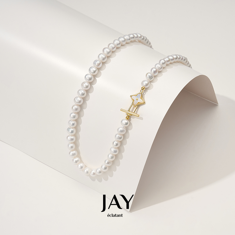 JAY强光高奢7-8mm淡水珍珠项链送妈妈气质锁骨链生日礼物送长辈