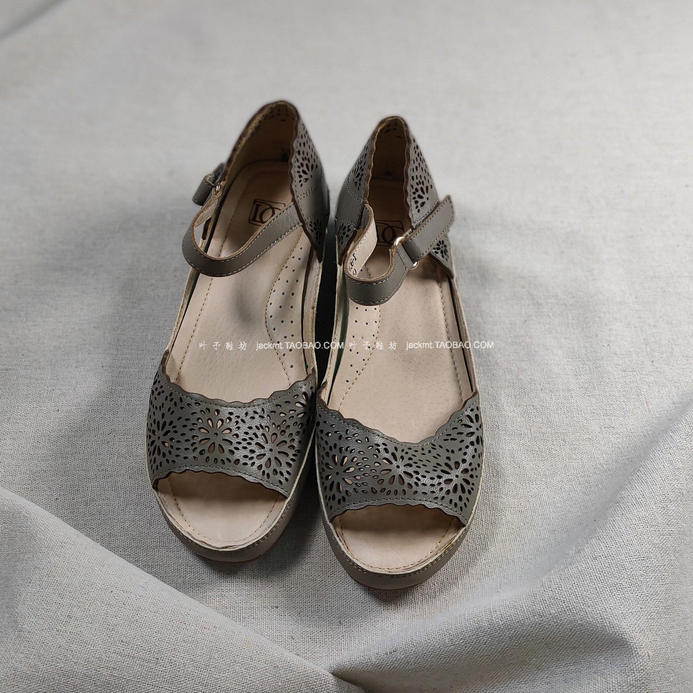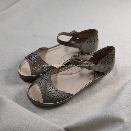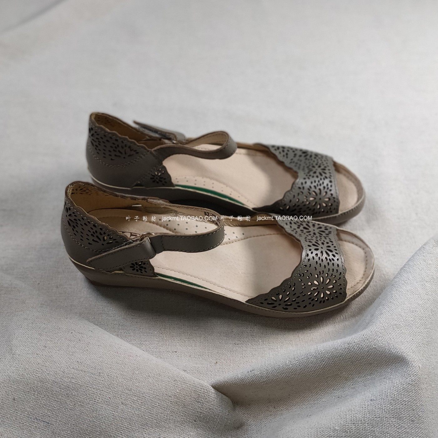 仅7对~纯原!清仓~可奔跑运动底时髦一字带绿色真皮罗马坡跟凉鞋