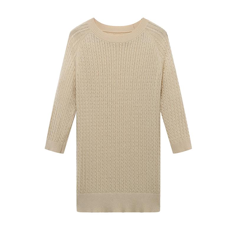 早秋七分袖羊毛小衫女中袖t恤春秋妈妈针织打底衫纯色麻花毛衣薄