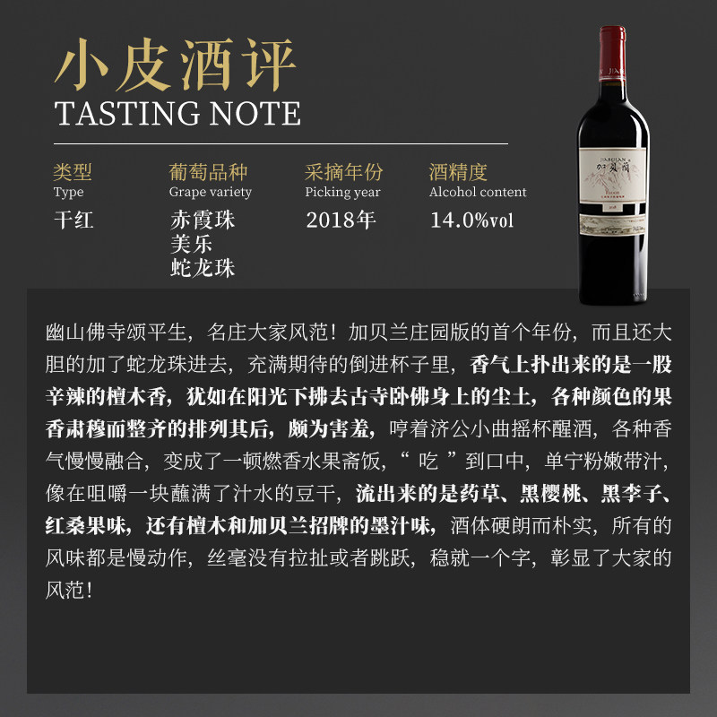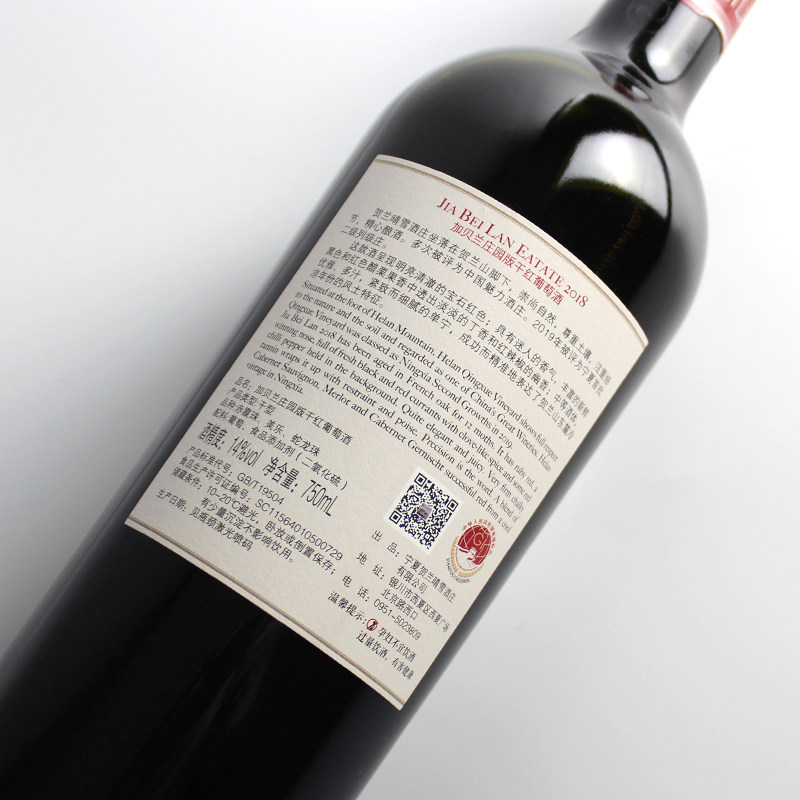 【列级名庄】宁夏红酒贺兰晴雪酒庄加贝兰干红葡萄酒750ml 2018年