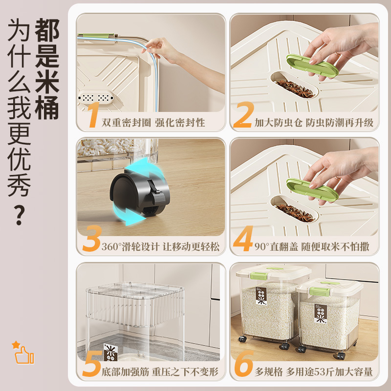 米桶家用2024新款食品级米箱防虫防潮防尘密封50斤面粉储存罐大米