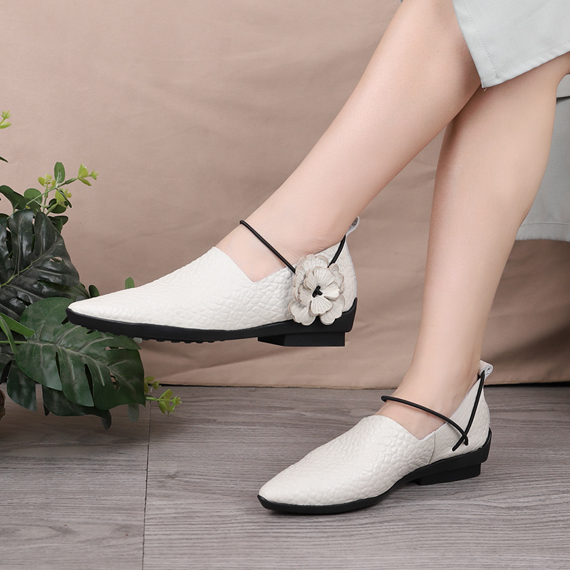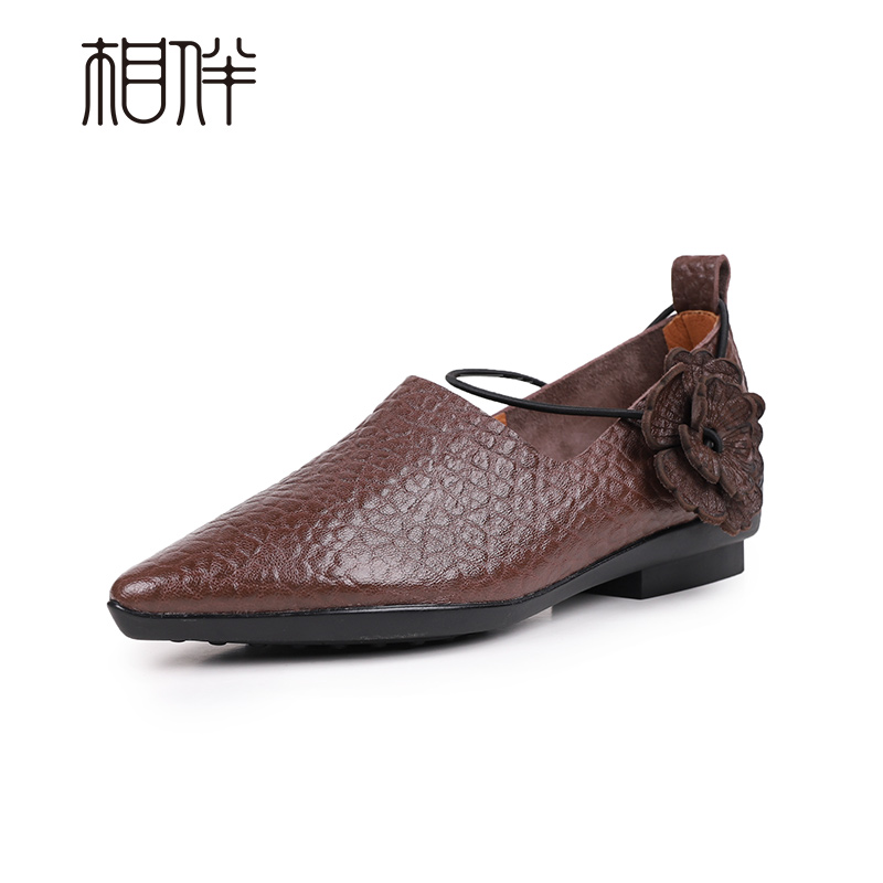 相伴真皮单鞋女皮鞋超软奶奶鞋大码鞋子软底尖头羊皮复古女鞋