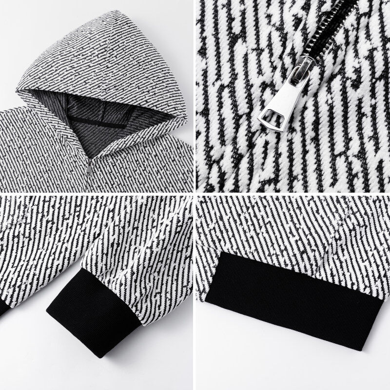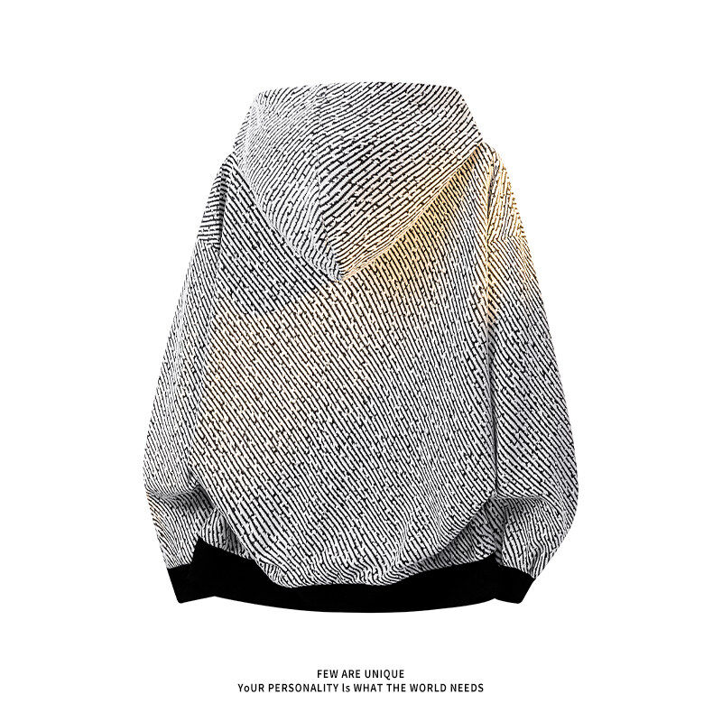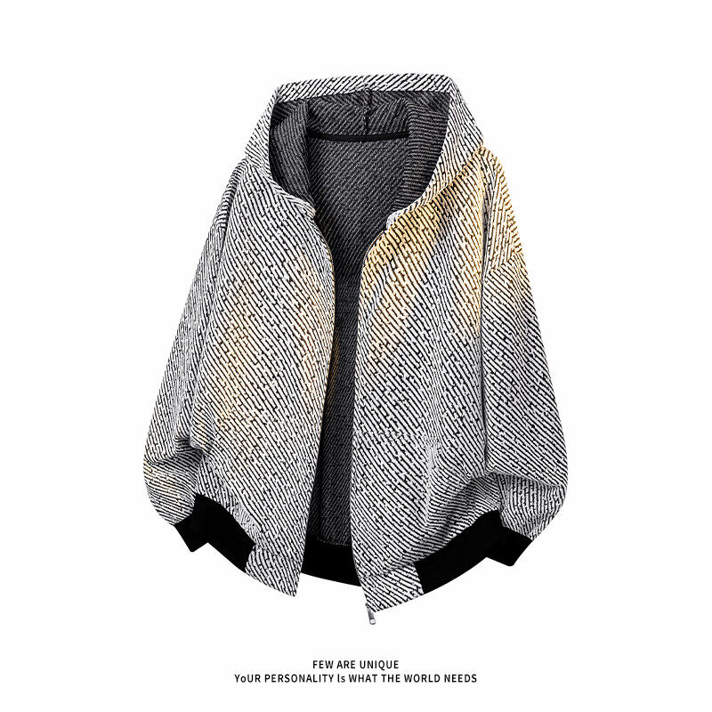 小香风针织开衫卫衣男款连帽重磅春秋条纹设计感美式复古夹克外套