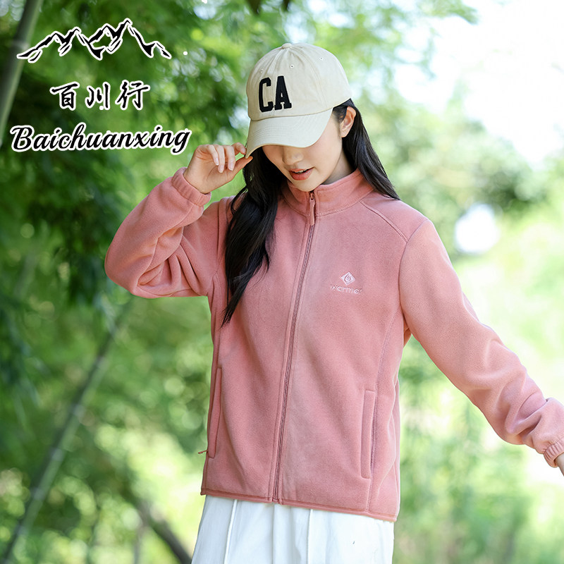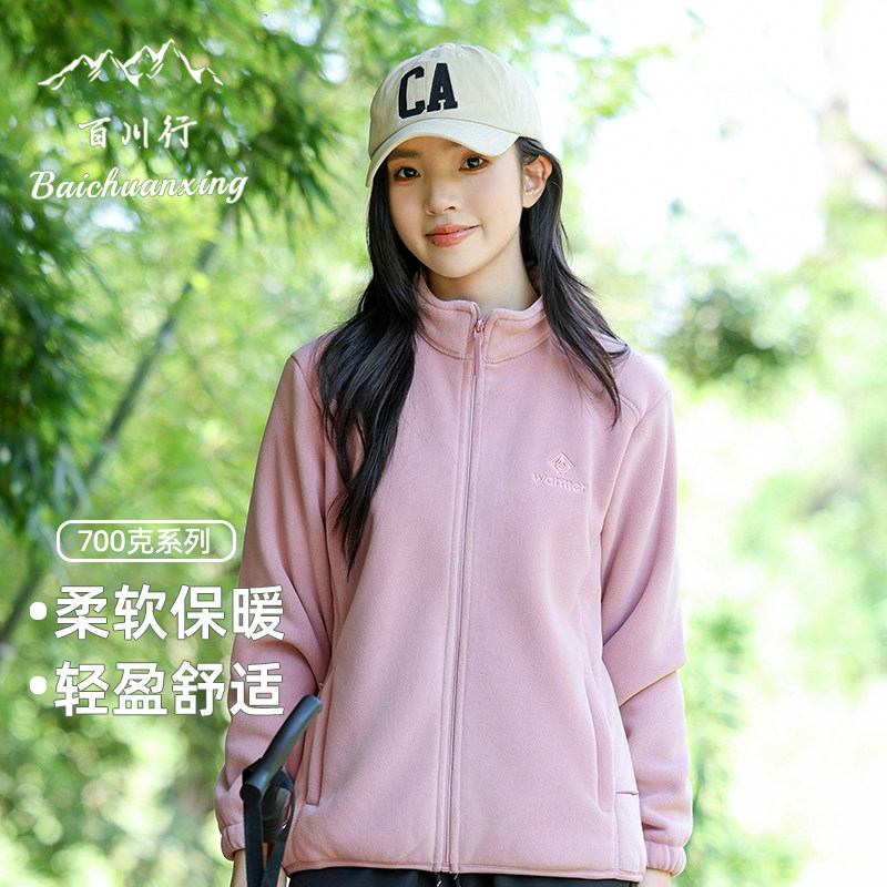 秋冬加绒加厚奥粒绒女士摇粒绒户外套保暖抓绒衣内胆休闲立领卫衣