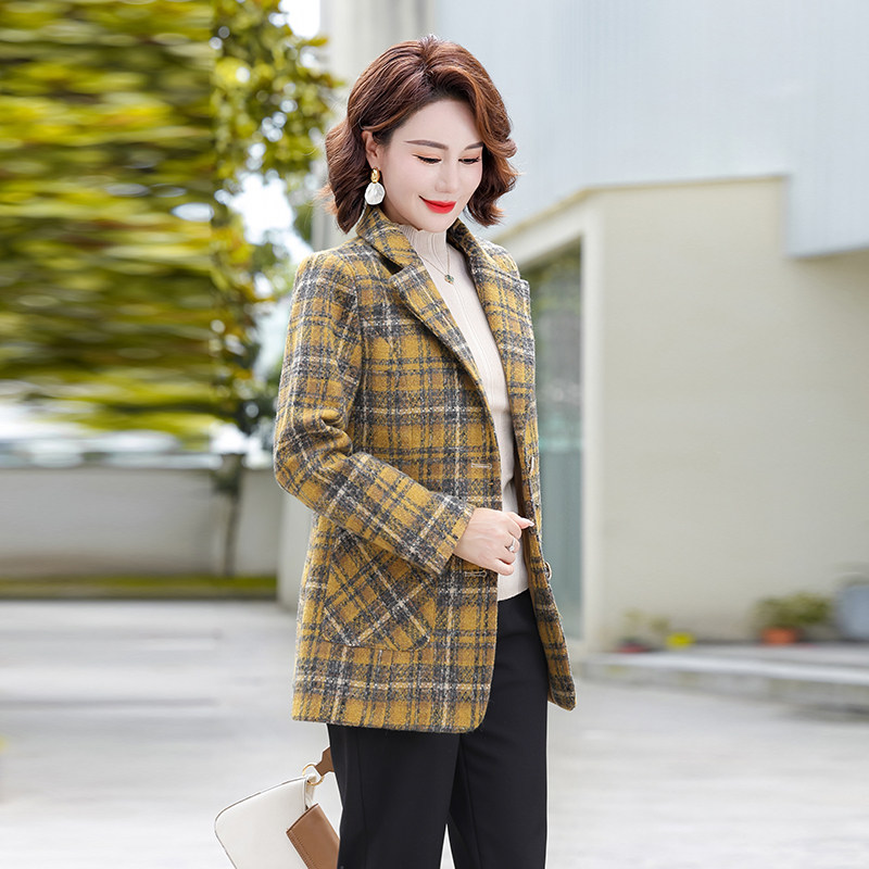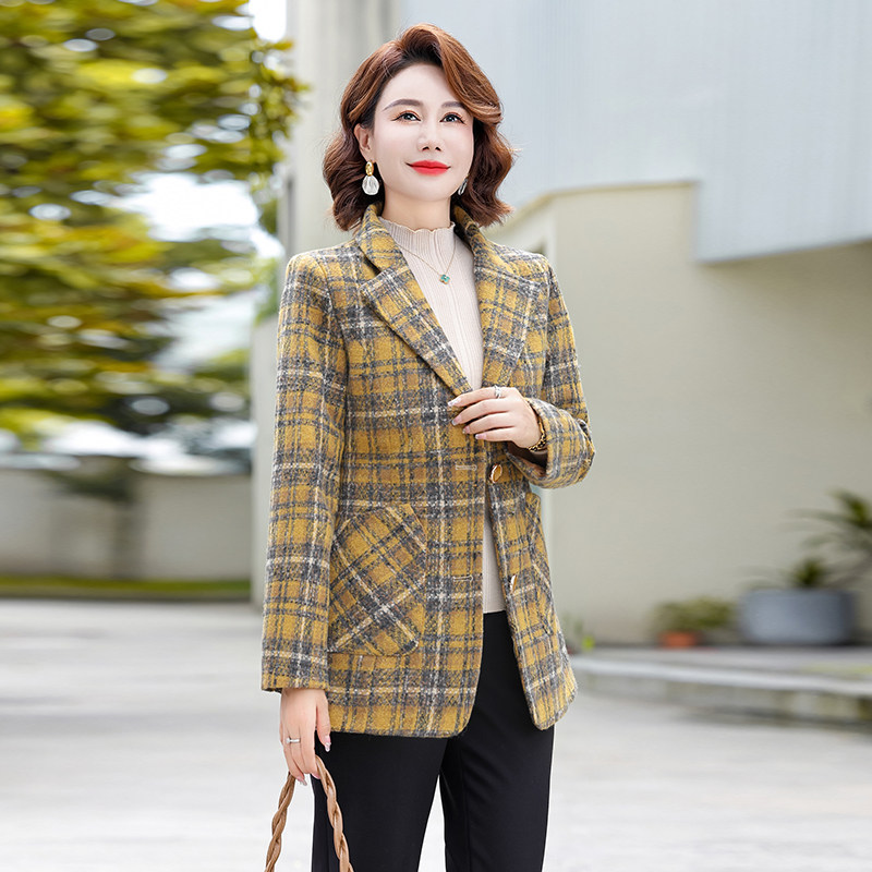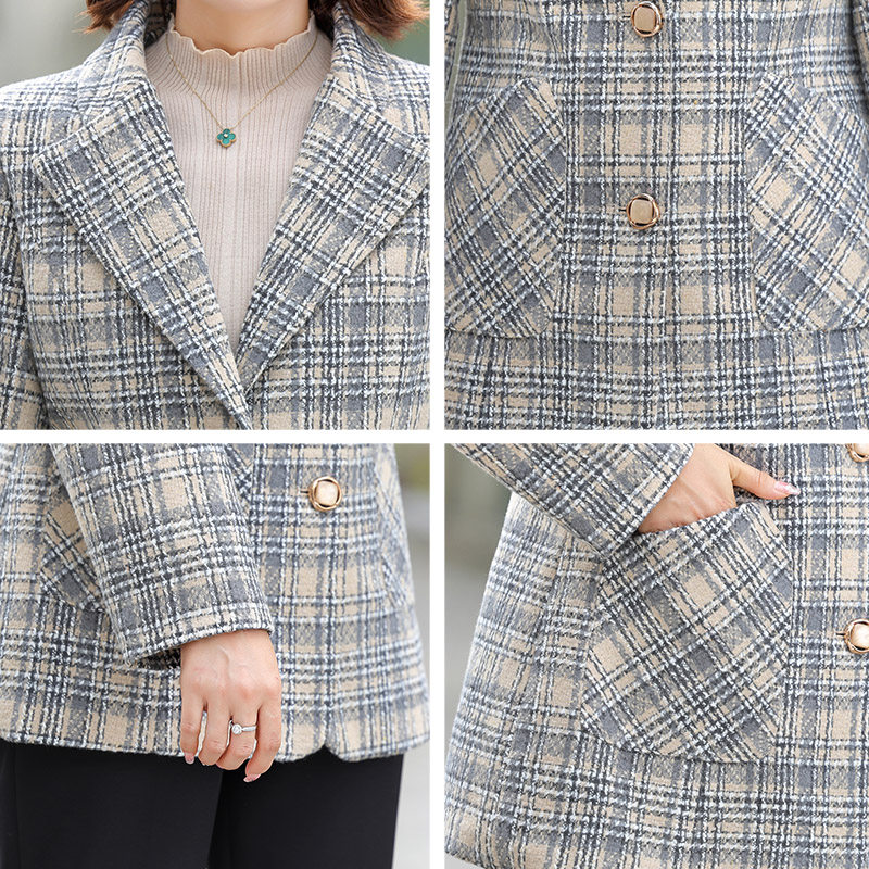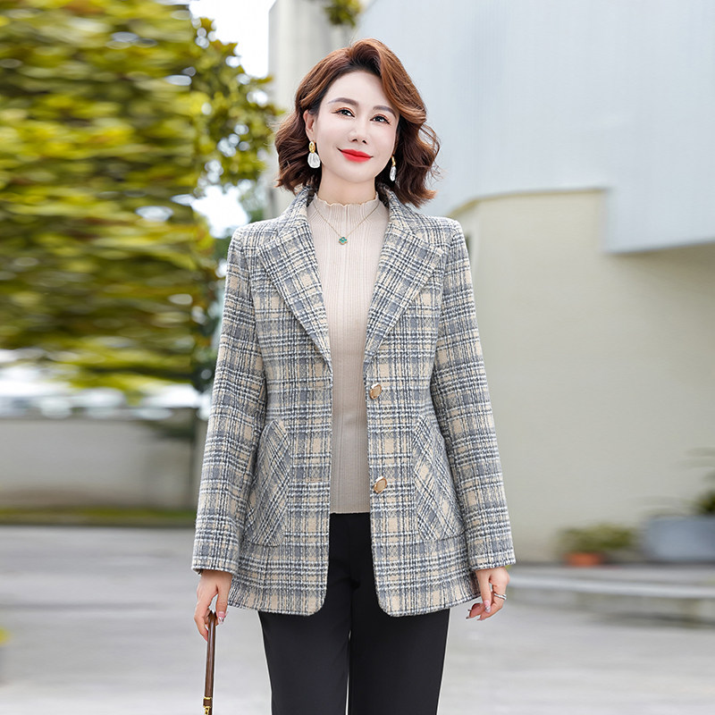 妈妈春装西服外套女2024新款洋气中老年春秋气质减龄格子西装上衣