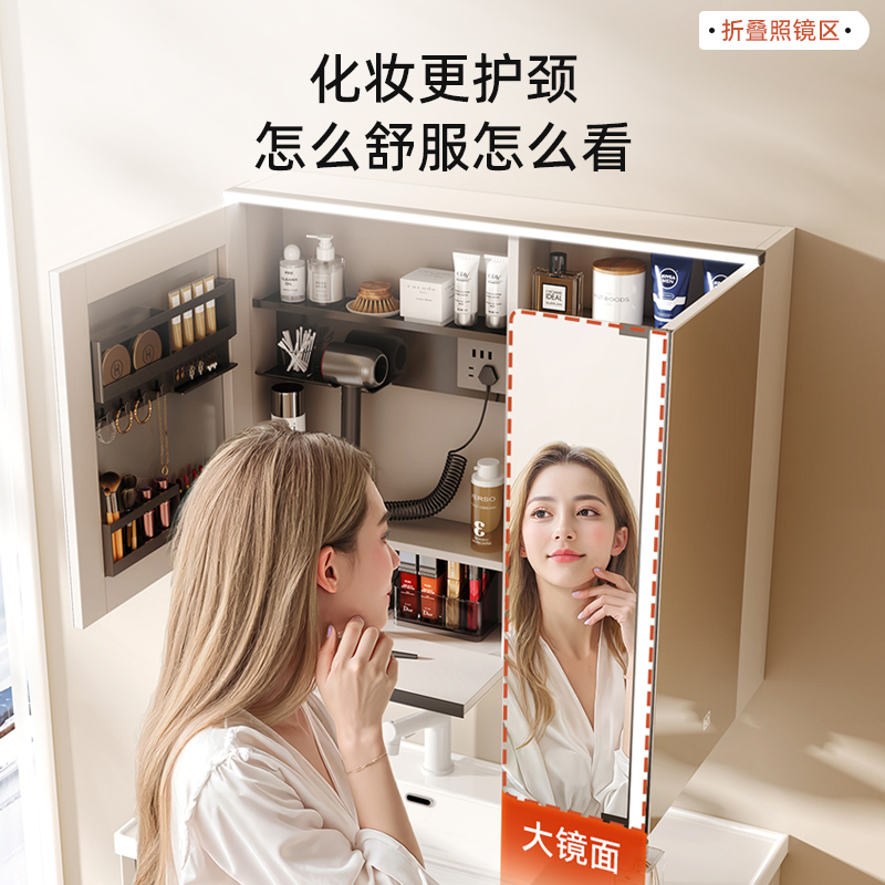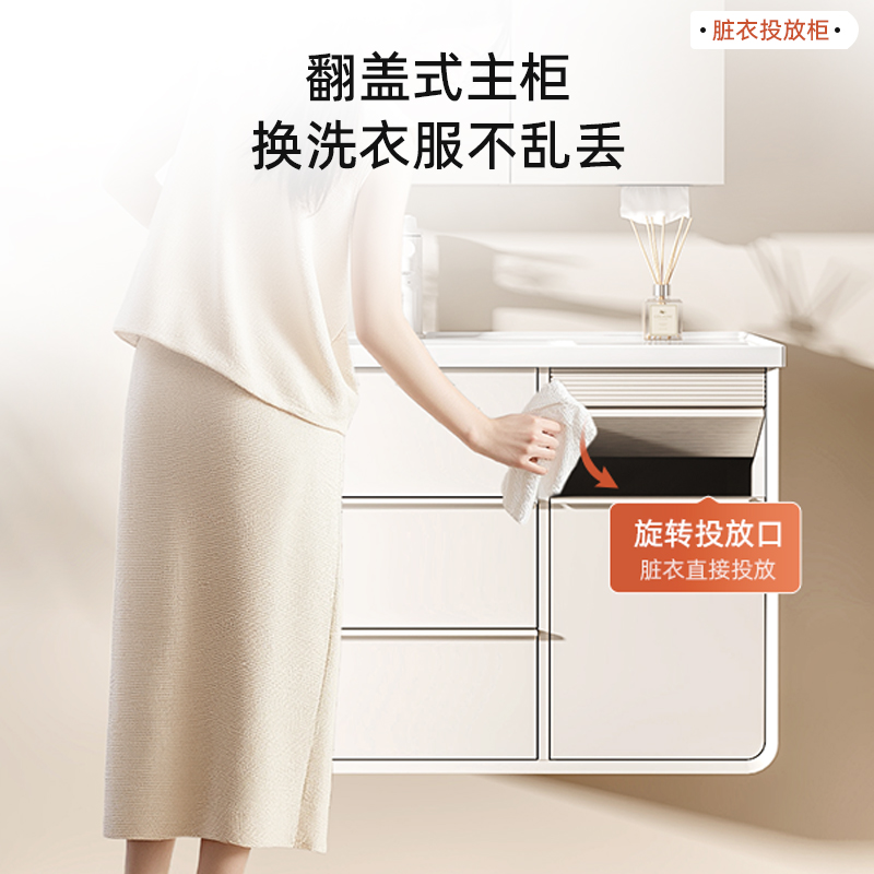 【国家补贴15%】心海伽蓝奶白陶瓷一体盆浴室柜美妆折叠镜脏衣篓