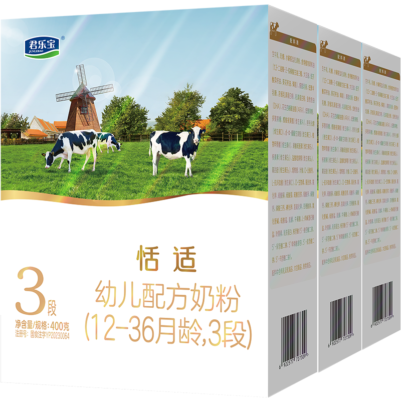 君乐宝恬适400g幼儿配方奶粉12-36个月小分子蛋白*3