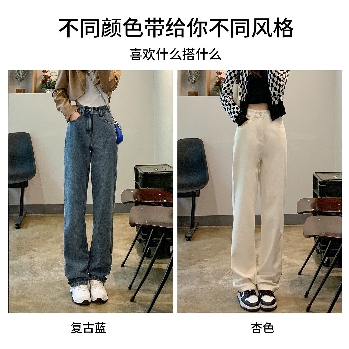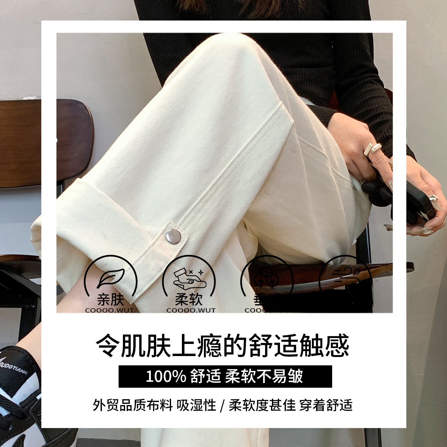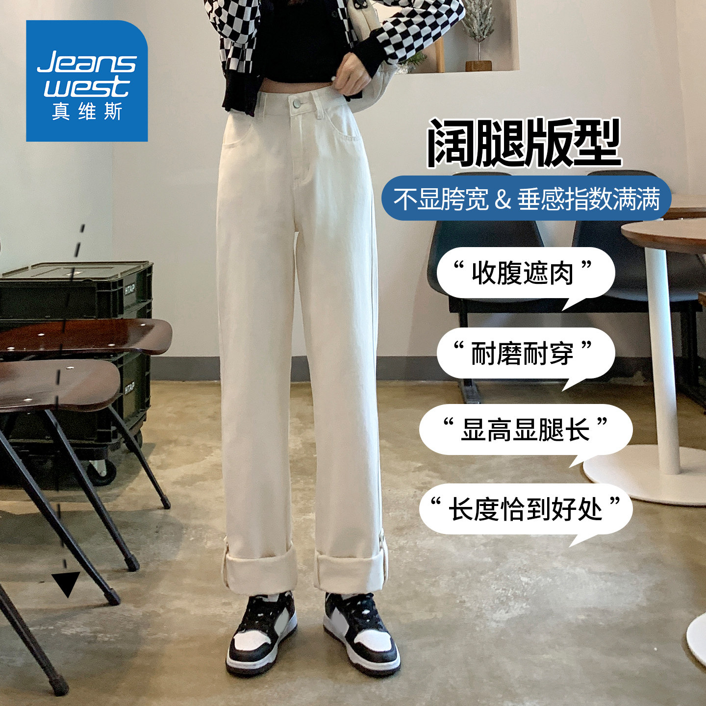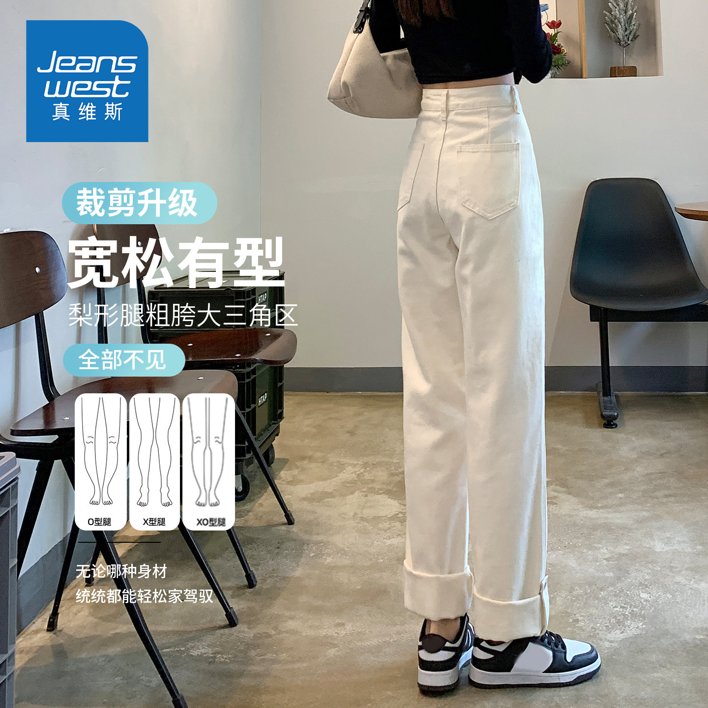 KZH真维斯卷边牛仔裤女秋季新款宽松直筒裤高腰设计感休闲长裤子