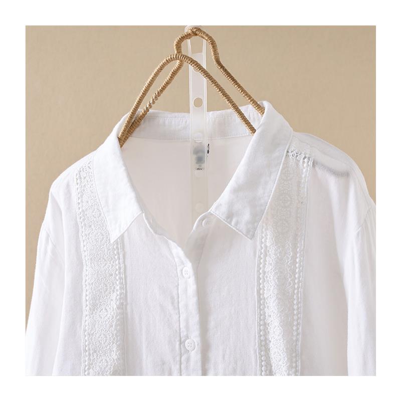 纯棉蕾丝普宁长袖打底衫衬衫女2025早秋新款高端洋气宽松上衣衬衣