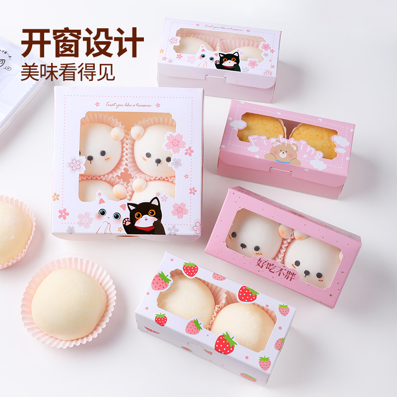 雪媚娘包装盒纸托蛋挞蛋黄酥甜品糕点糯米糍烘焙2/4粒装打包盒子