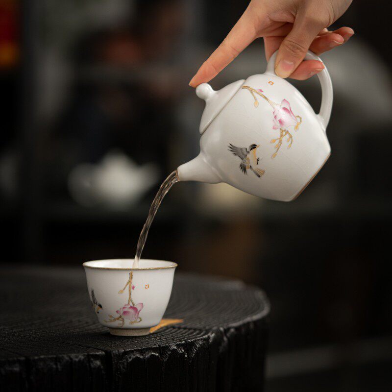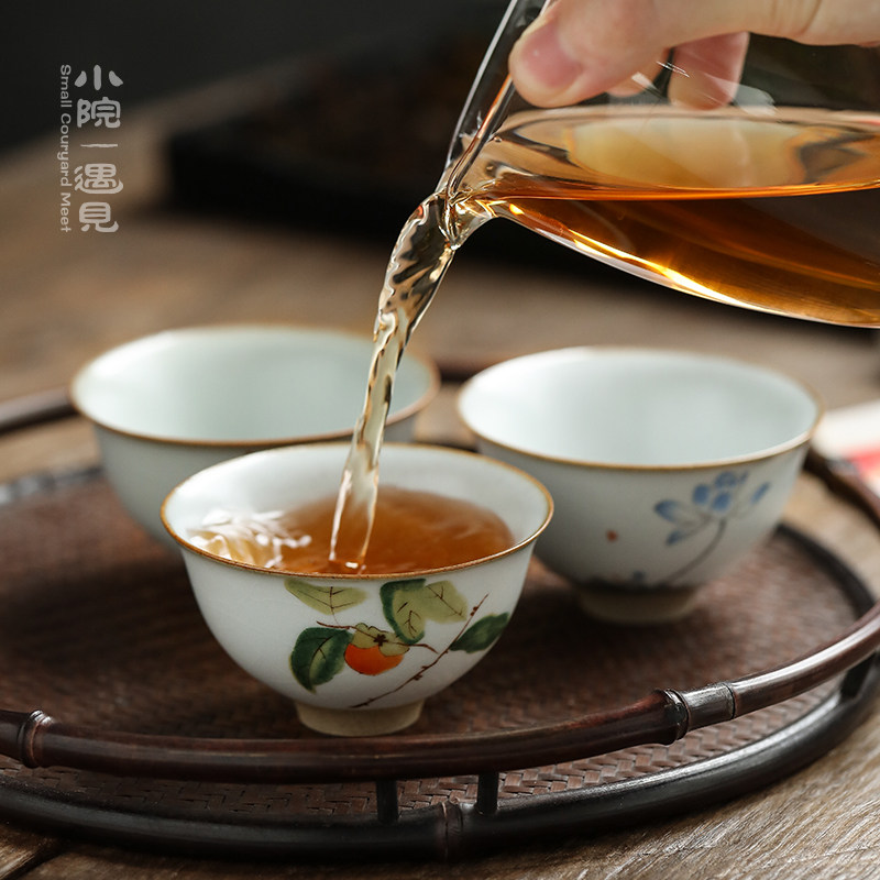 陶瓷汝窑品茗杯功夫茶具单杯茶盏开片可养主人杯茶杯套装伴手礼品