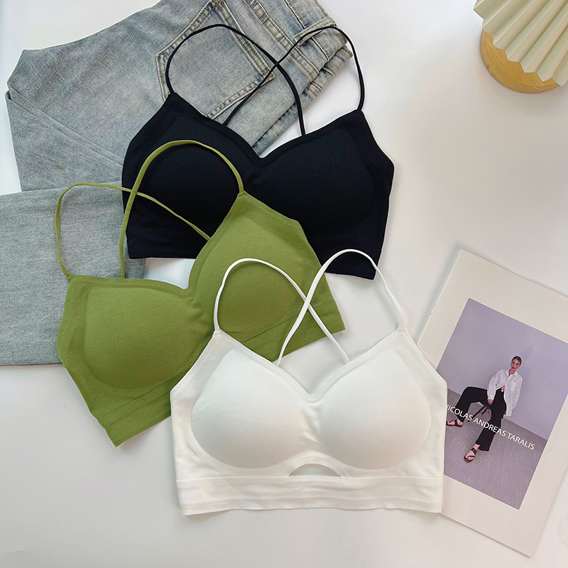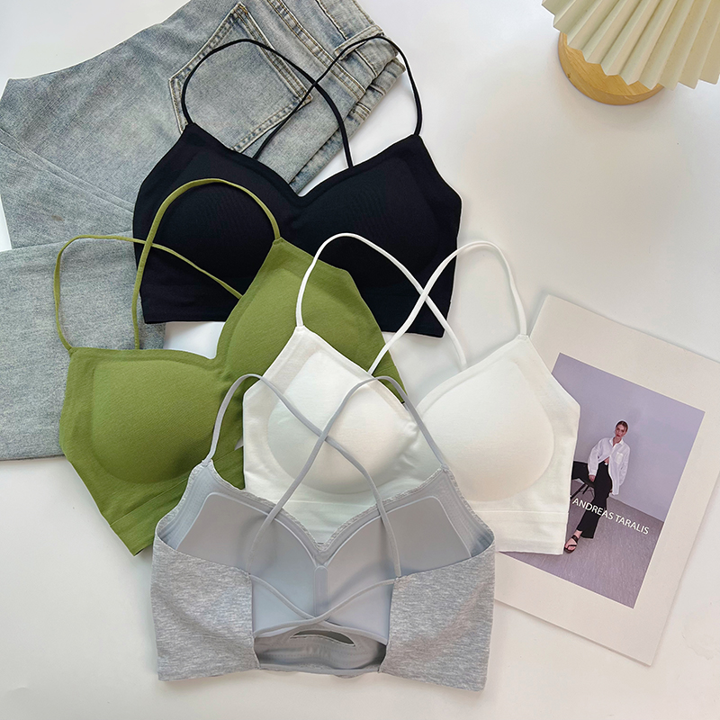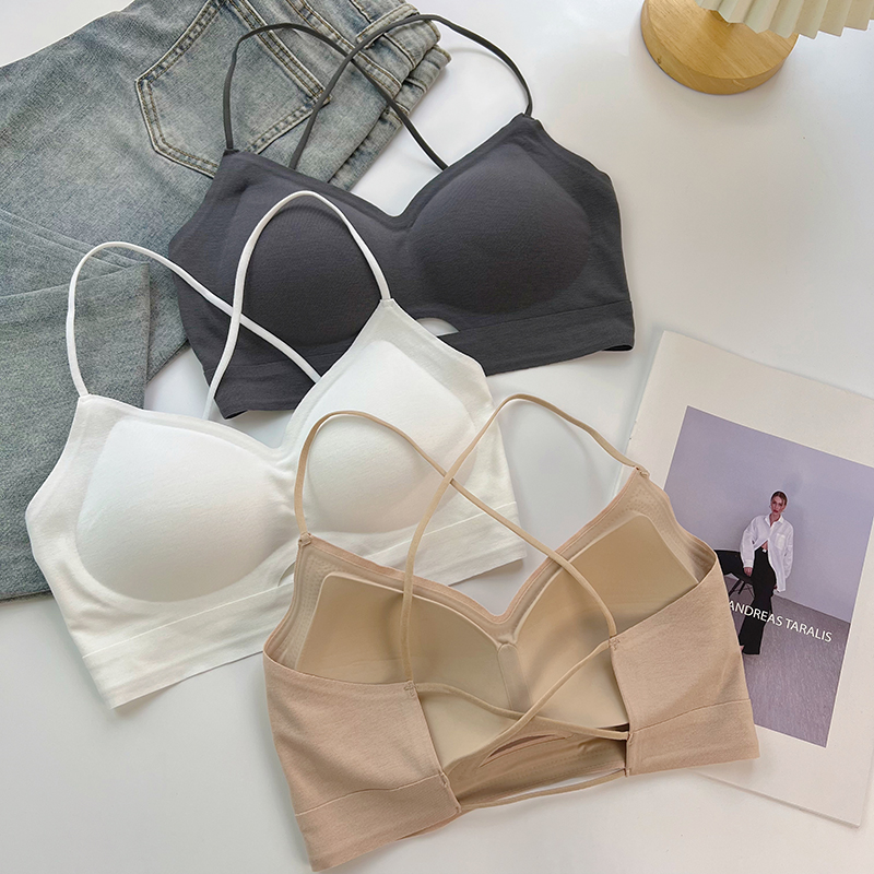 美背内衣女可外穿交叉薄款背心小胸无痕细肩带无钢圈文胸夏小吊带