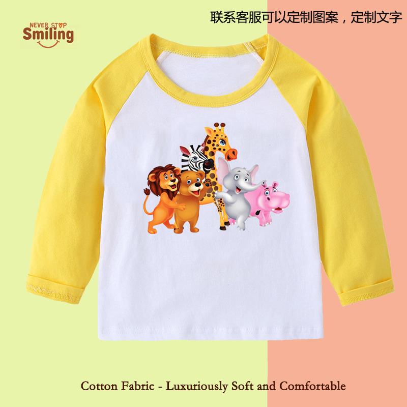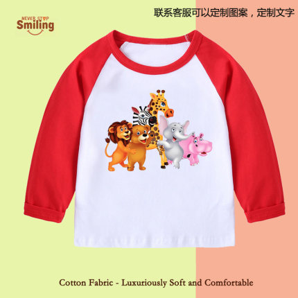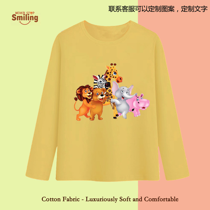长颈鹿狮子T恤衫男童女孩儿童装大象宝宝长袖熊熊亲子装上衣服4岁