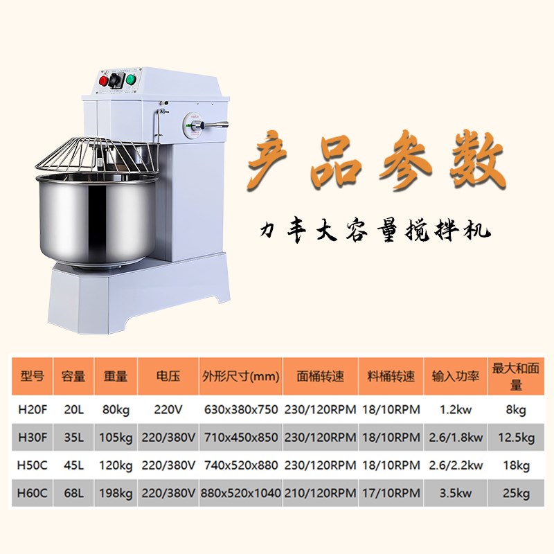 力丰和面机商用面粉食品盆式绞面打面搅拌机双动双速25公斤揉面机