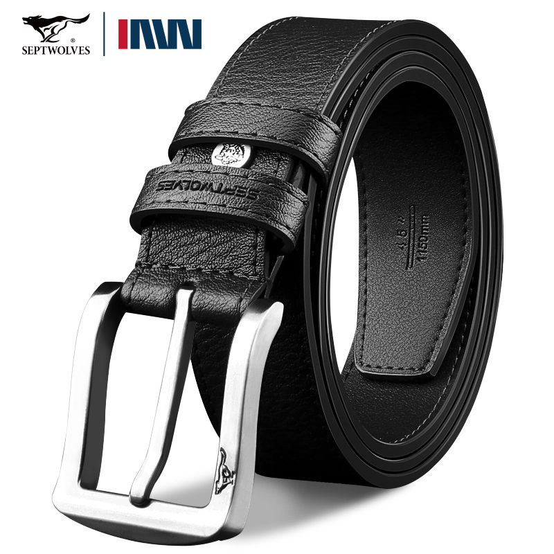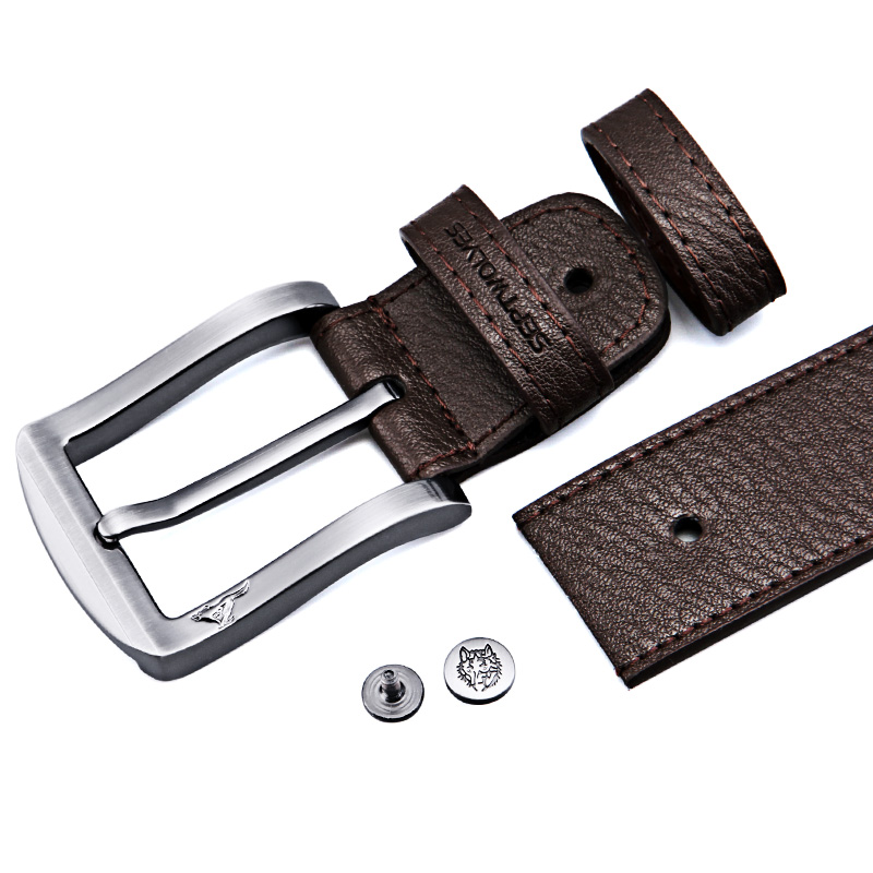 正品七匹狼男士皮带 简约针扣真皮腰带 品牌纯牛皮休闲扣眼裤带软