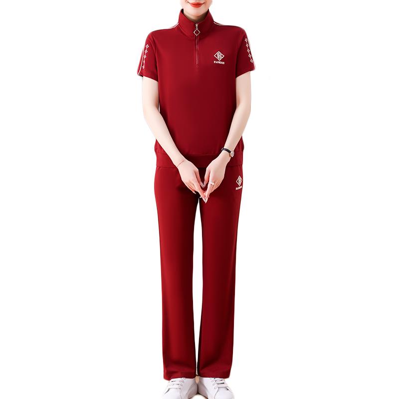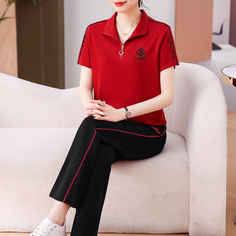冰翻领短套装丝中女夏季新款袖108-8006晨跑服年妈妈休闲两件套