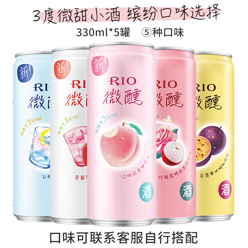 RIO锐澳预调鸡尾酒微醺rio白桃白兰地3度少女低度气泡果酒6罐装