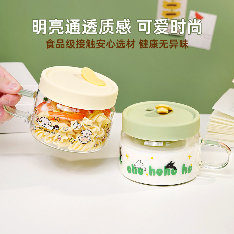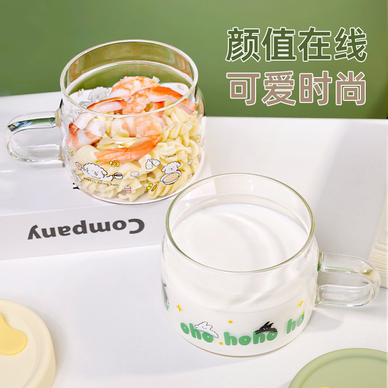 玻璃牛奶杯微波炉可加热早餐专用带把手耐热高颜值酸奶燕麦碗水杯