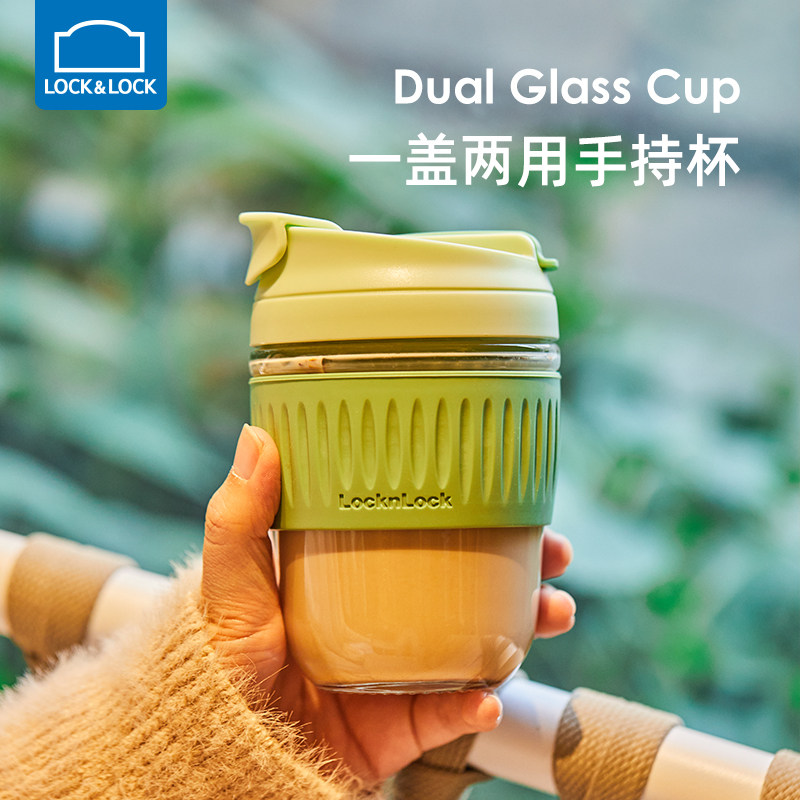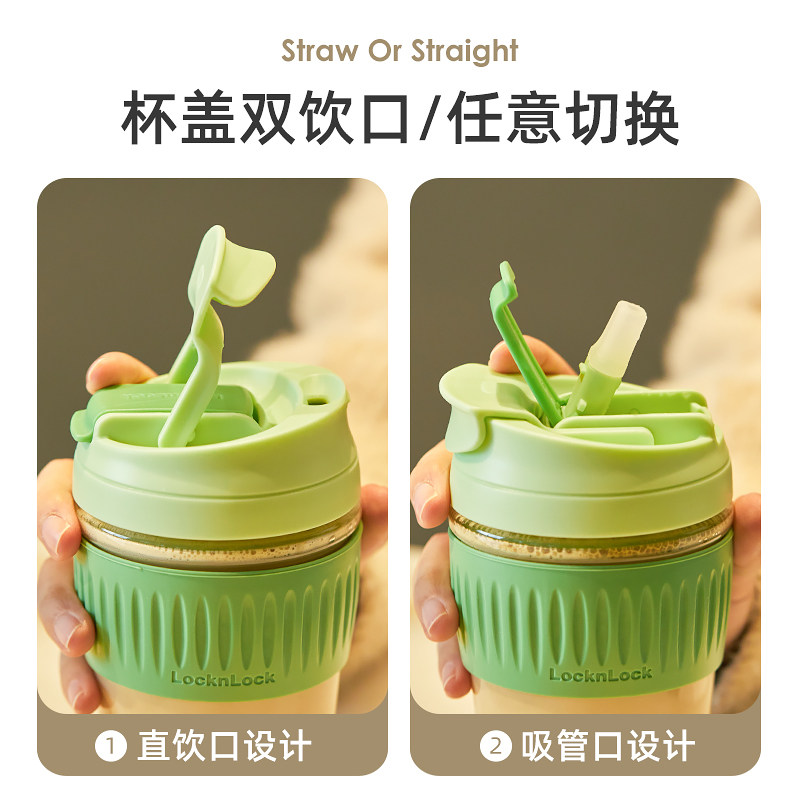 乐扣乐扣玻璃水杯女新款外出随行杯便携带吸管杯男高颜值咖啡杯子