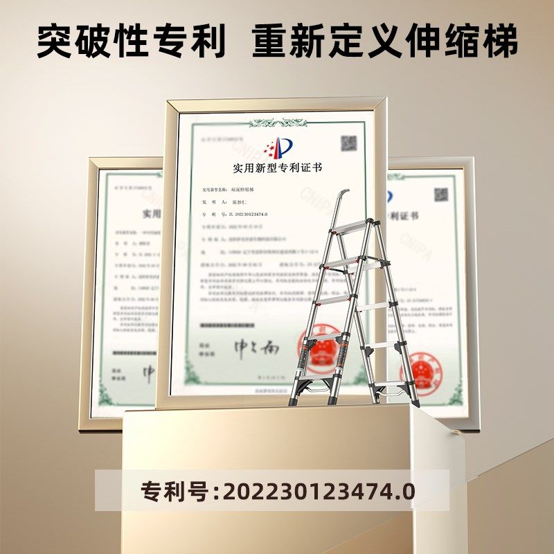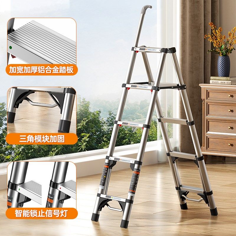 奥鹏踩踩乐梯子人字铝合金加厚家用折叠多功能伸缩室内不锈钢楼梯