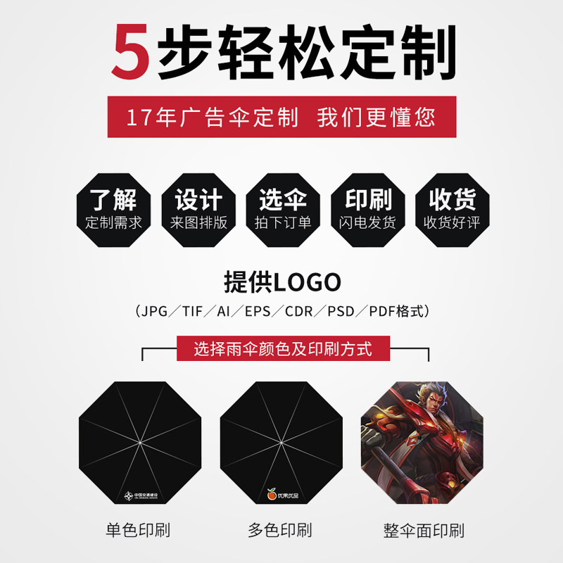 长柄雨伞定制logo广告可印字图案订晴雨两用双人加大号礼品