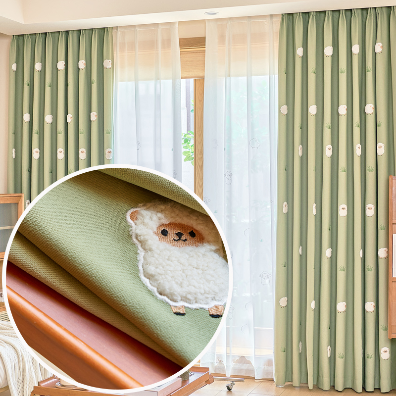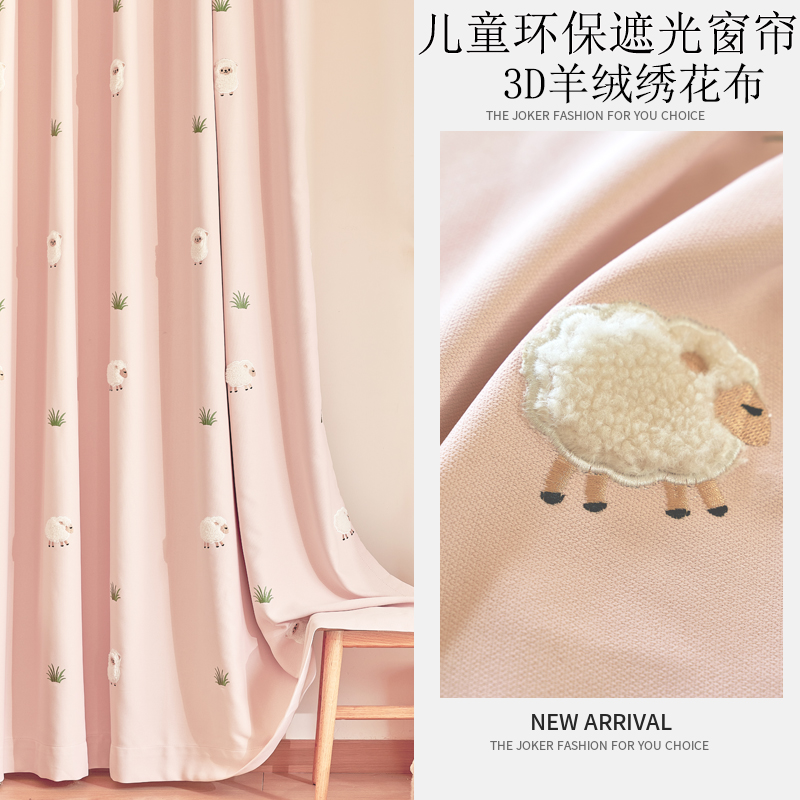 高遮光棉麻布儿童卡通3D绣花窗帘