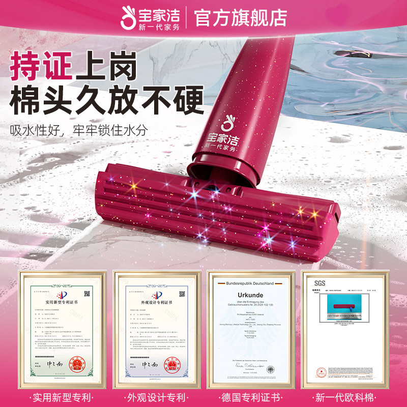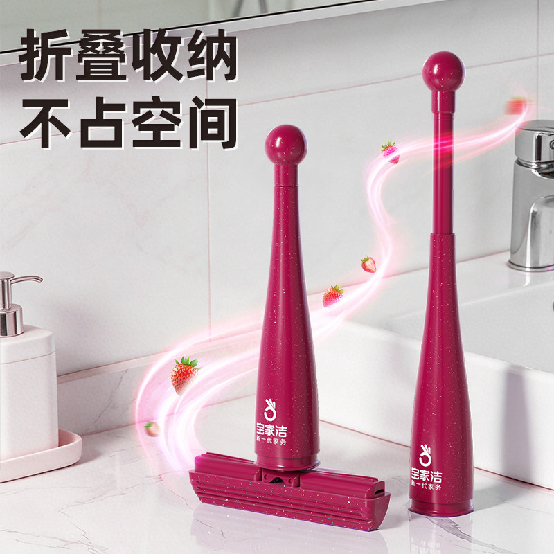 宝家洁迷你小拖把卫生间玻璃清洁擦窗神器刮水家用台面吸水不脏手