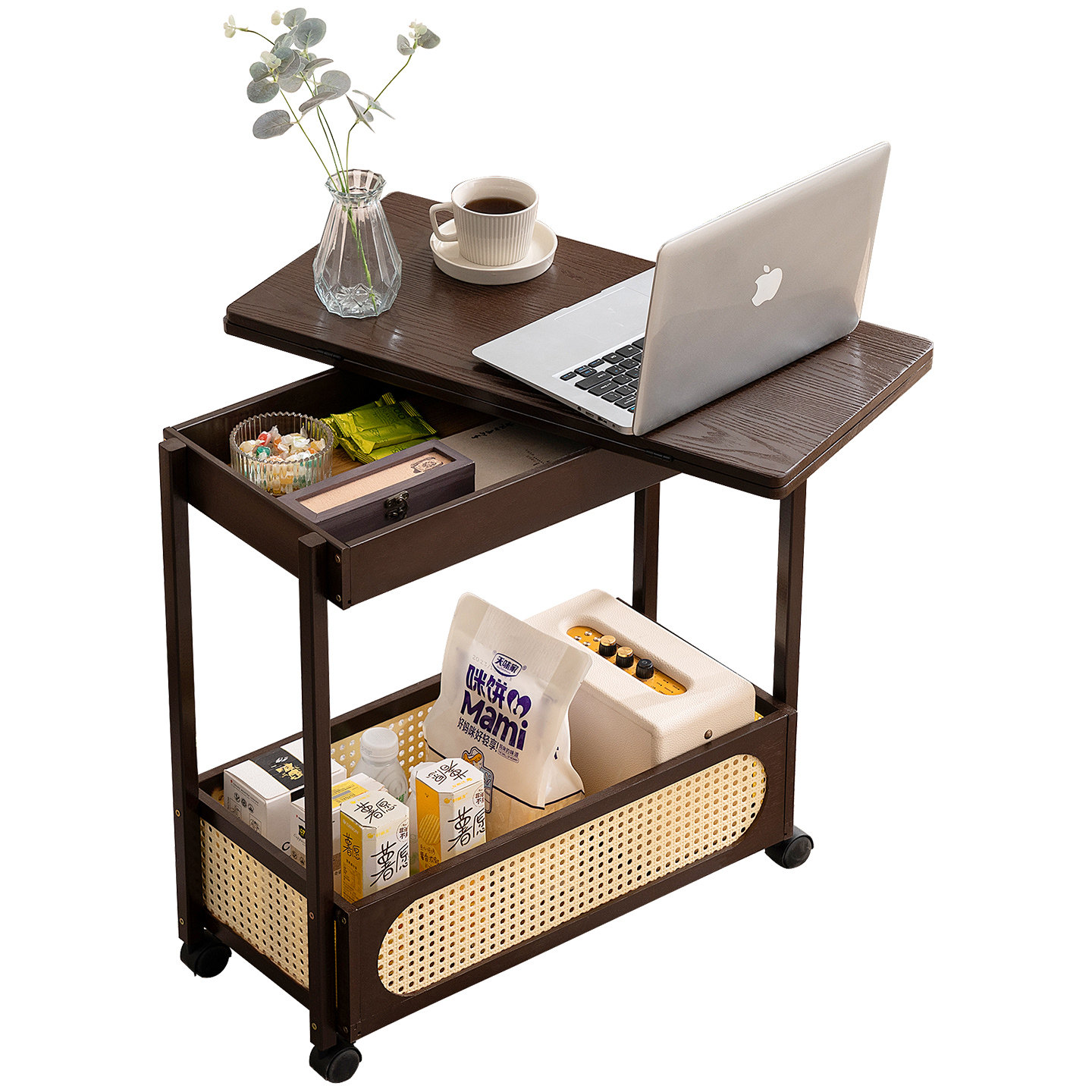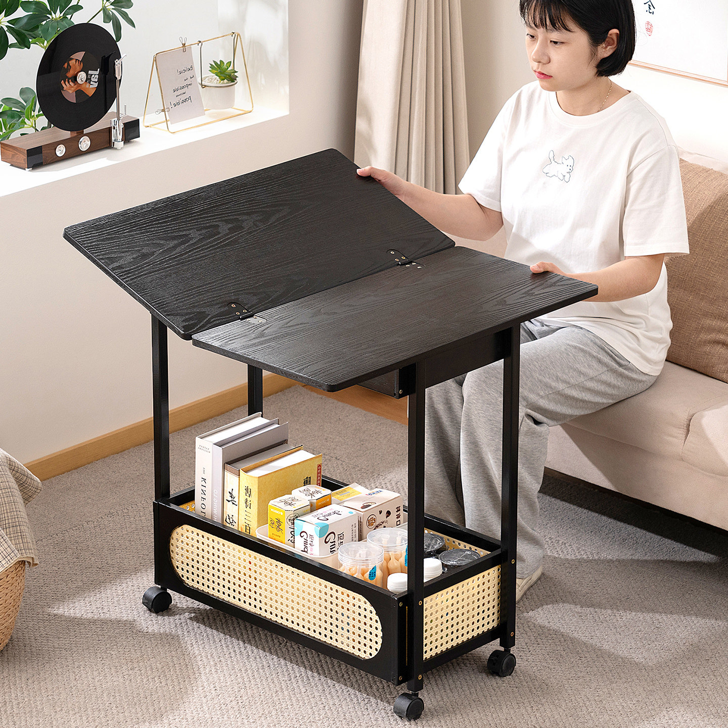 可移动边几茶几中古小桌子沙发边柜小户型折叠推车置物架实木客厅