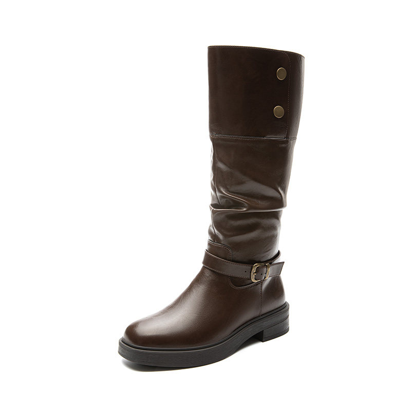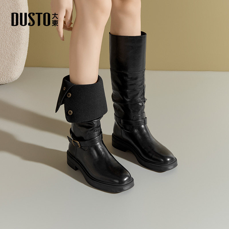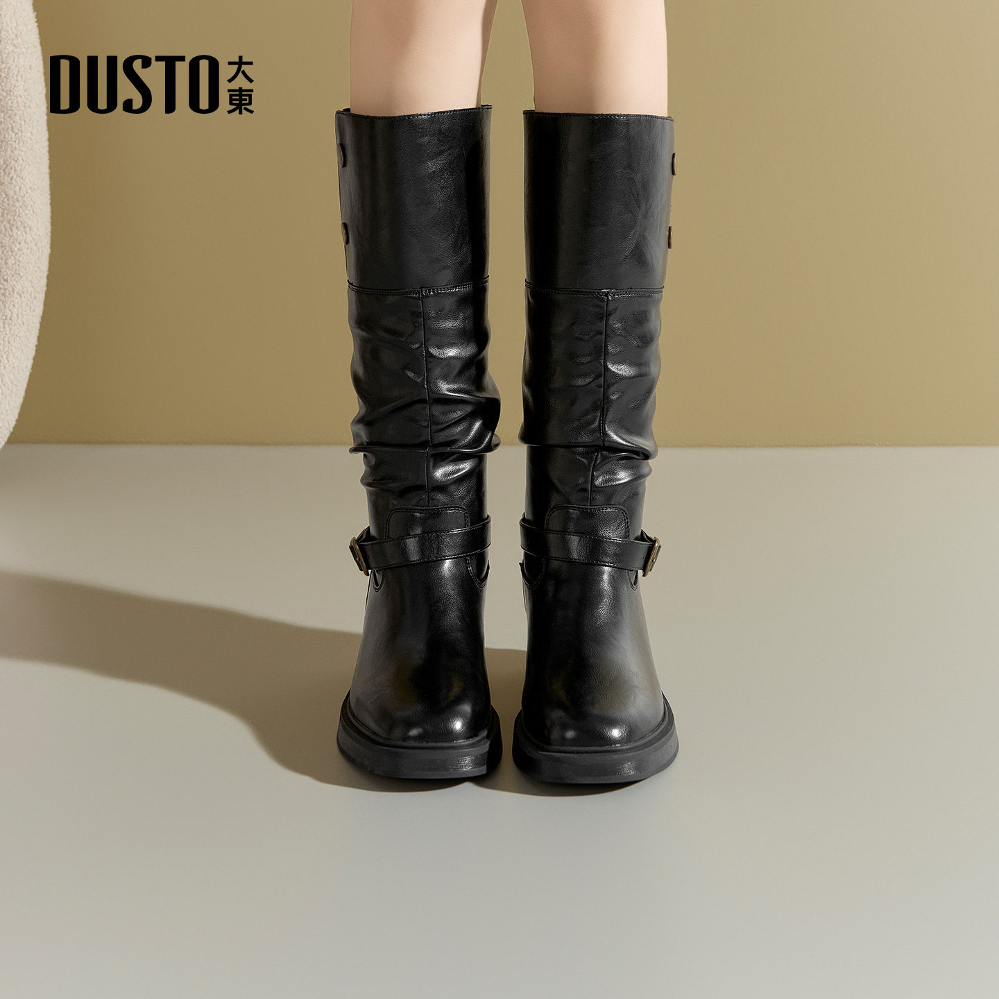 大东dd长筒靴女2025新款秋冬高筒皮靴子显瘦女靴西部美拉德骑士靴