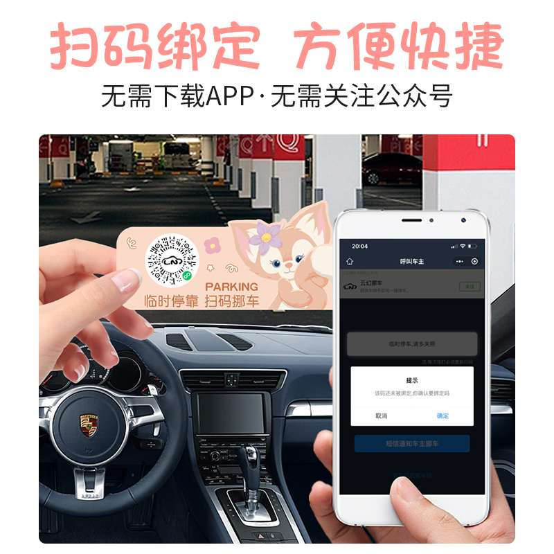 手机扫码挪车号码牌汽车临时停车电话贴纸二维码移车卡车内留号器
