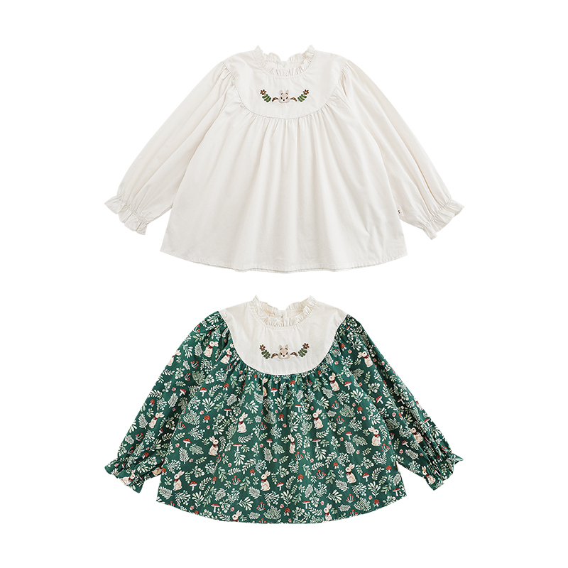 幼悠女童甜美淑女小碎花分割绣花领娃娃衫2025春季荷叶花边衬衫潮