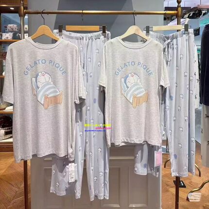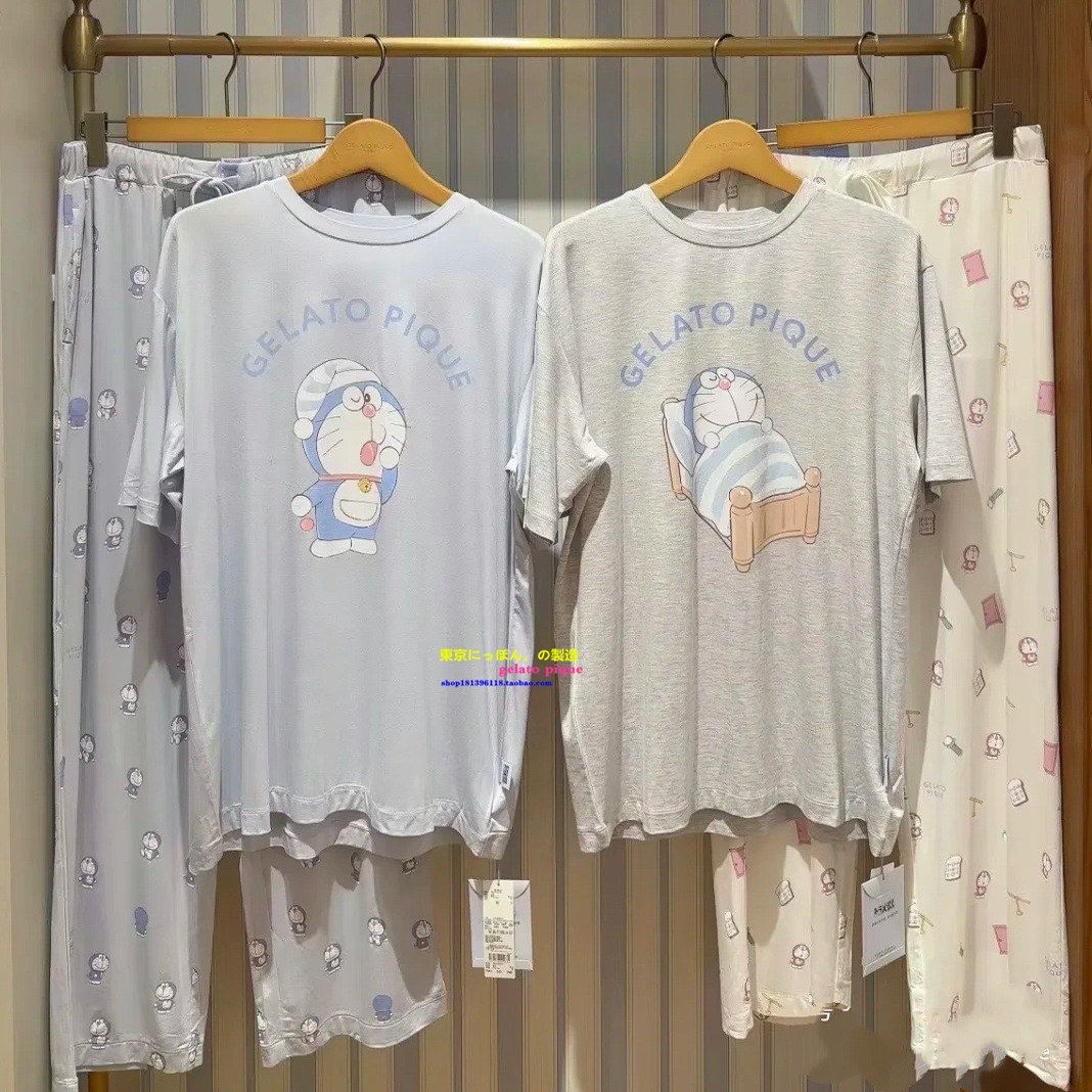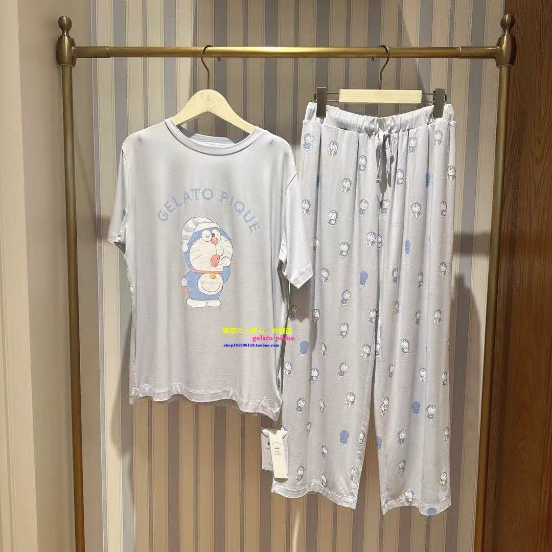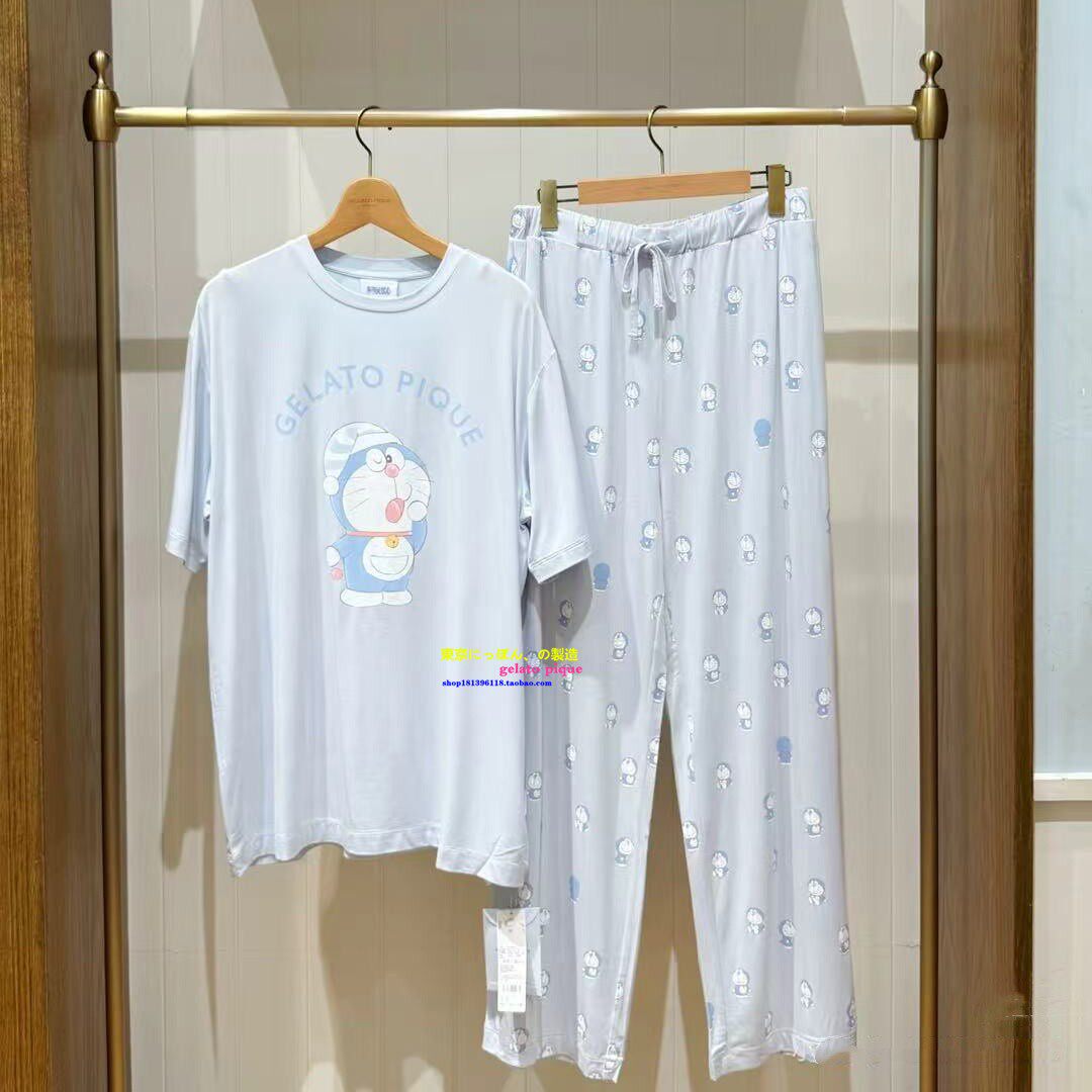 日本GP gelato pique春夏莫代尔短袖长裤睡衣男哆啦A梦卡通家居服