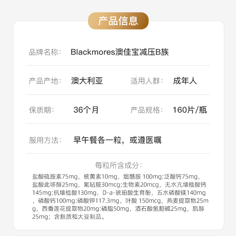 BLACKMORES澳佳宝复合维生素B族减压配方调节情绪vb维他命b160粒