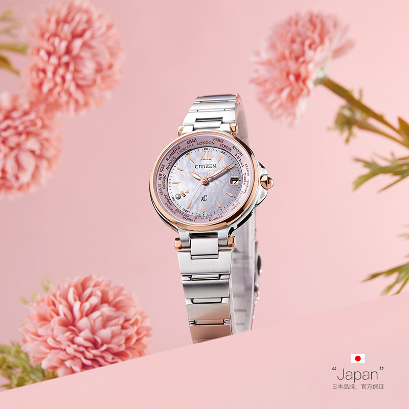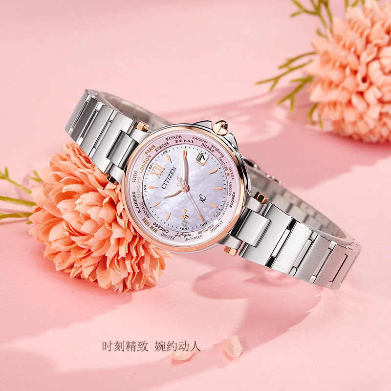 【自营】西铁城手表女 xC优雅时尚电波光动能钢带女表EC1011-62W