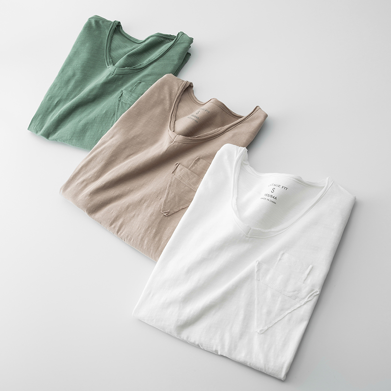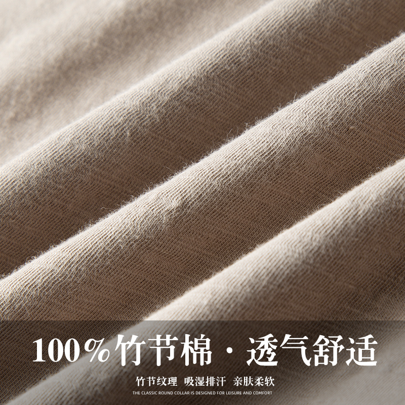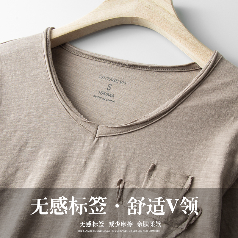 天竺竹节棉T恤男宽松 白色内搭做旧V领打底衫男长袖潮流百搭