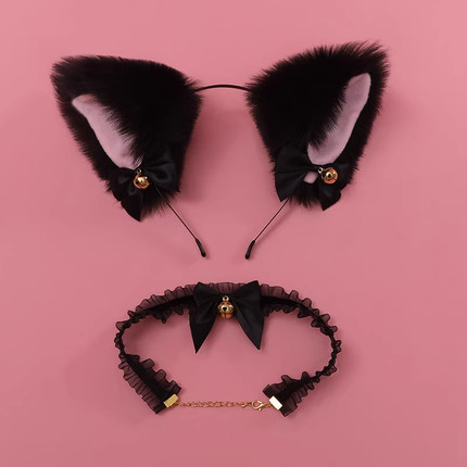 型男反差可爱款毛绒猫耳朵男生体育生1M0S小狼狗带铃铛蝴蝶结发箍